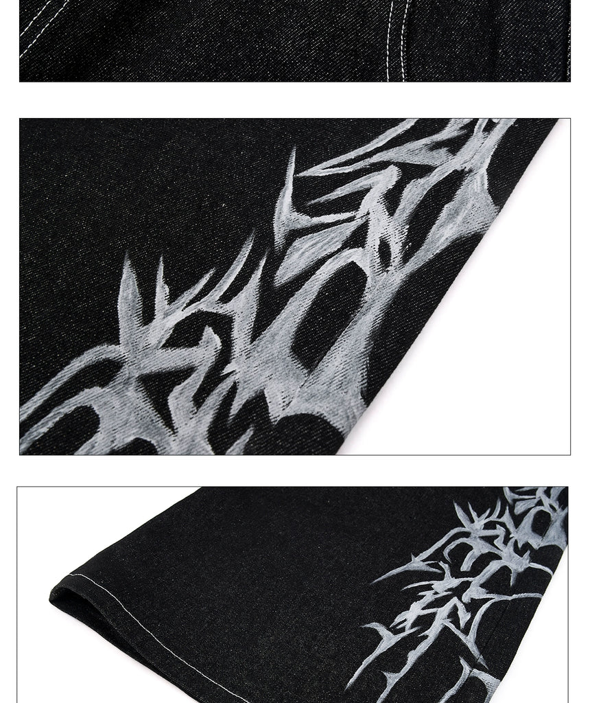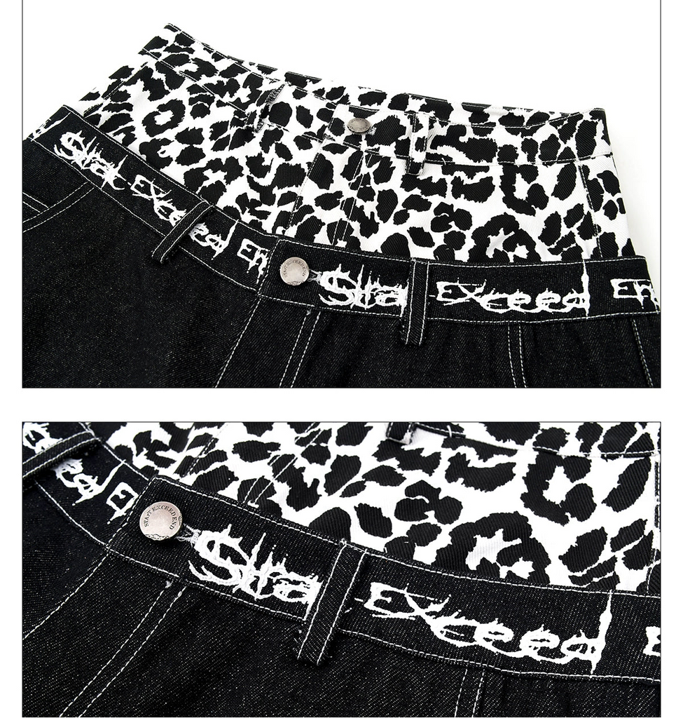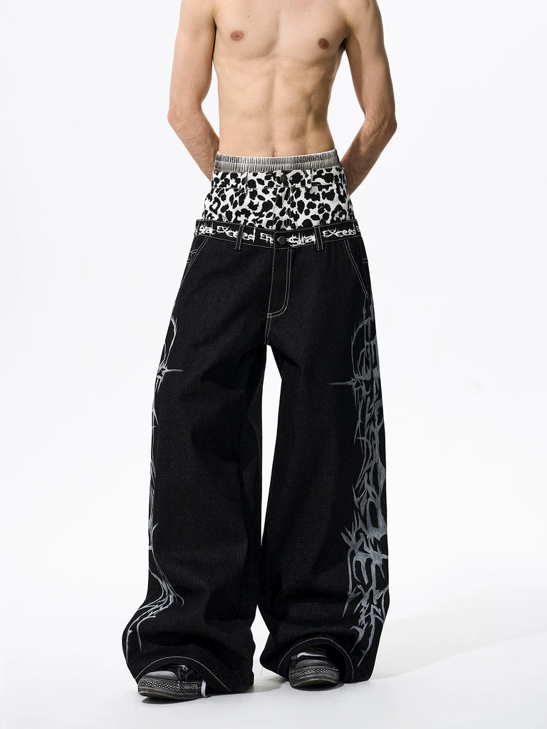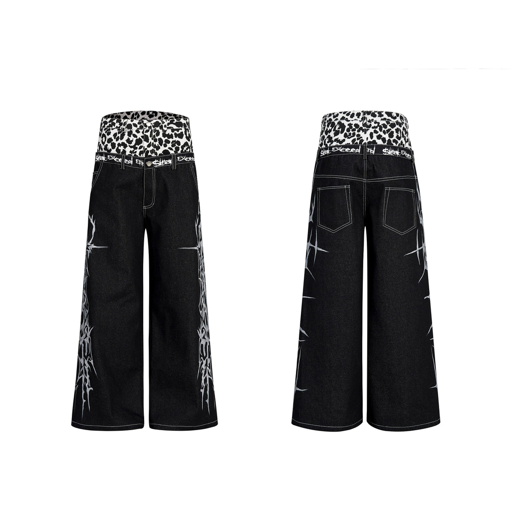 【25s Oct.】Hand-painted Thorn Leopard Print Double Waistband Jeans