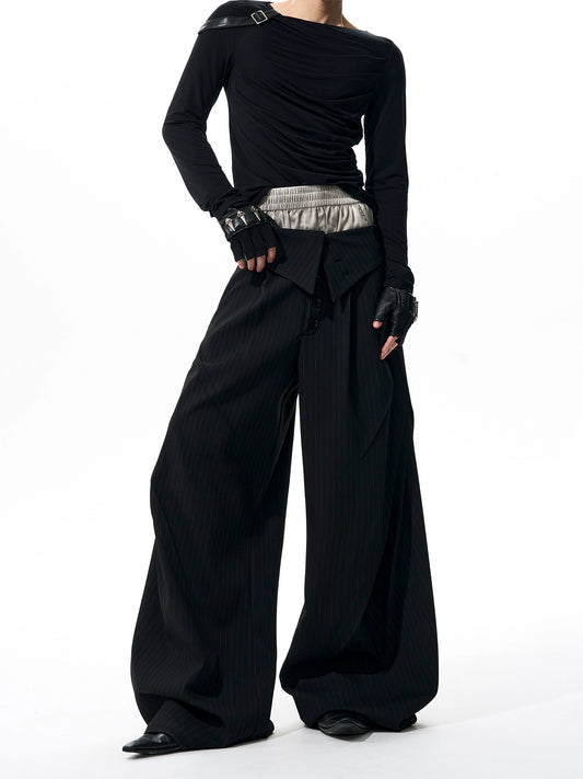 【25s Oct.】Foldable Waistband Vertical Striped Trousers