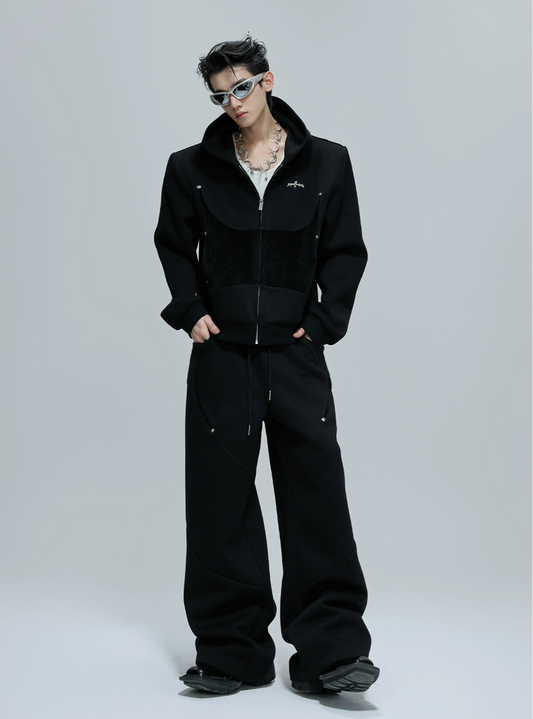 【25s Oct.】Hooded Cropped Mohair Patchwork Hooide/Pants