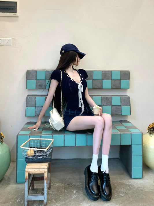 【25s Mar.】Hot Girl Lace Belt Buckle Stitching Long Sleeves