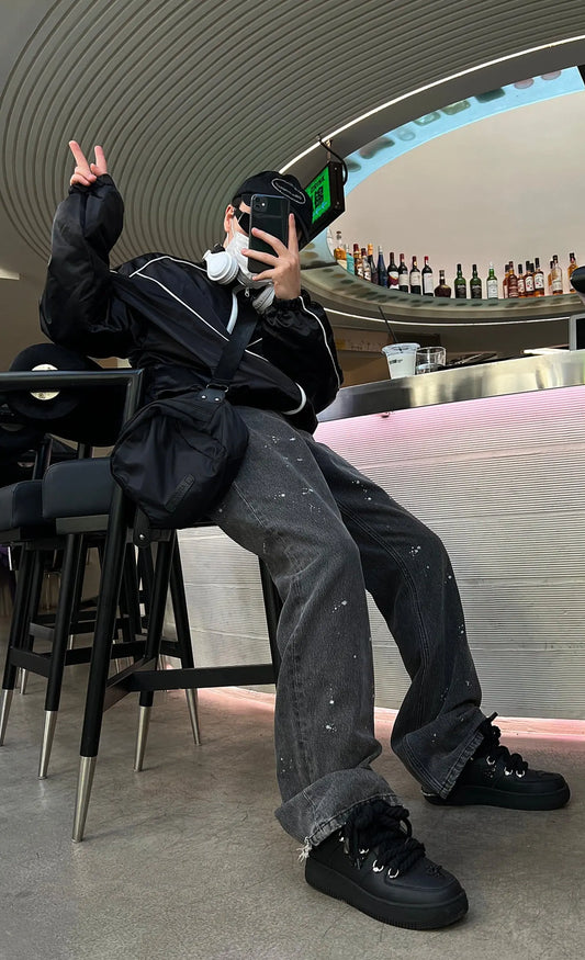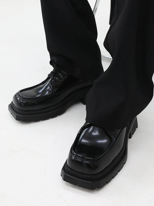 【New】Black Huge Square Toe Leather Shoes