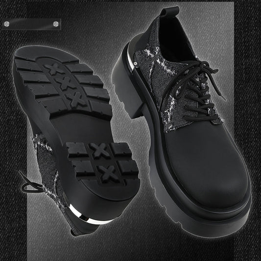 Denim Patchwork Iron Plate Thick-soled Derby Shoes
