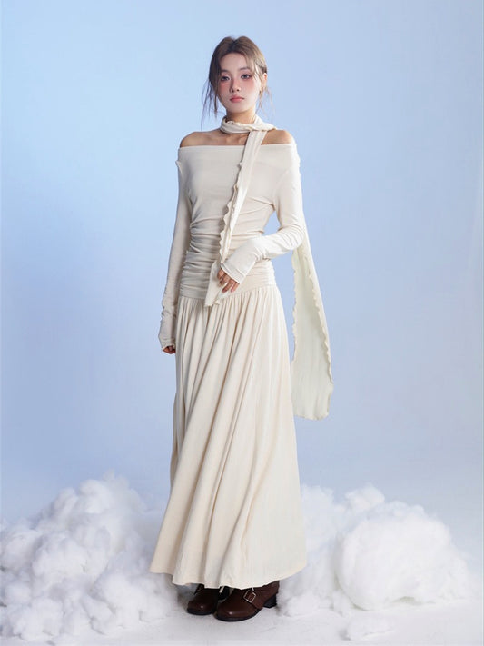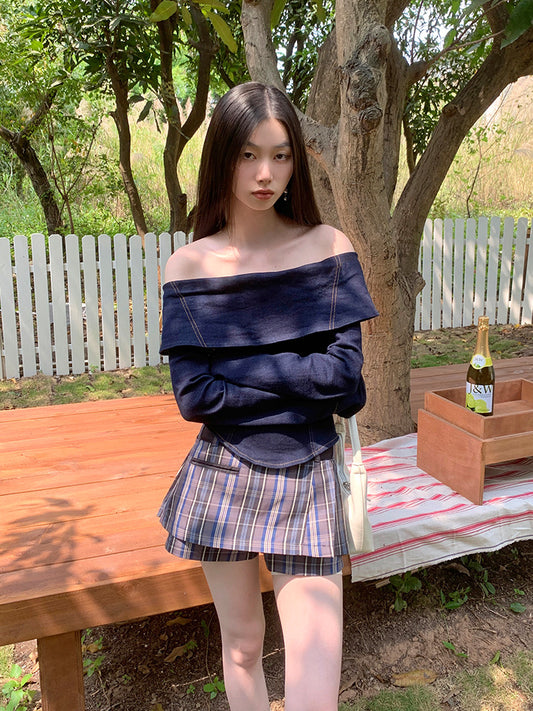 【25s Feb.】Retro Slim Denim Off-Shoulder Top