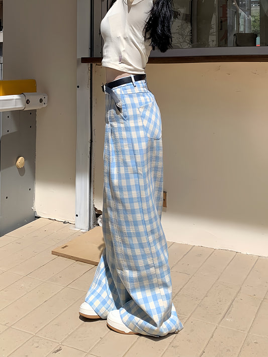 【25s Feb.】Refreshing Blue Plaid Casual Pants