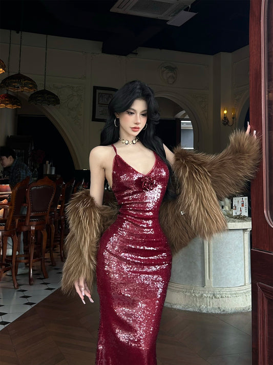 【25s Mar.】French V-Neck Backless Vacation Dress