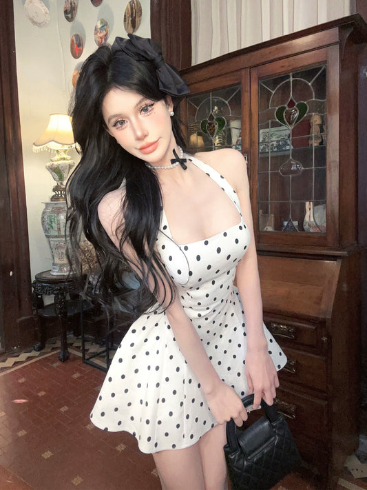 【25s Mar.】Polka Dot Fishbone V-Neck Halter Dress