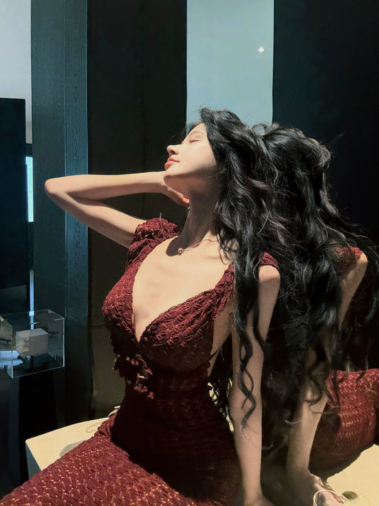 【25s Aug.】Lace Deep V Tie Sexy Waist Hip Dress