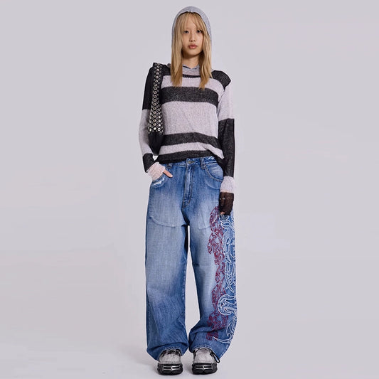 【25s Aug.】Embroidered Totem Mid-Rise Wide-Leg Jeans