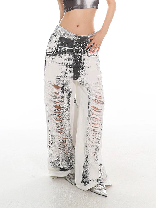 【25s May.】Tie-Dye Graffiti Ripped Wide Leg Jeans