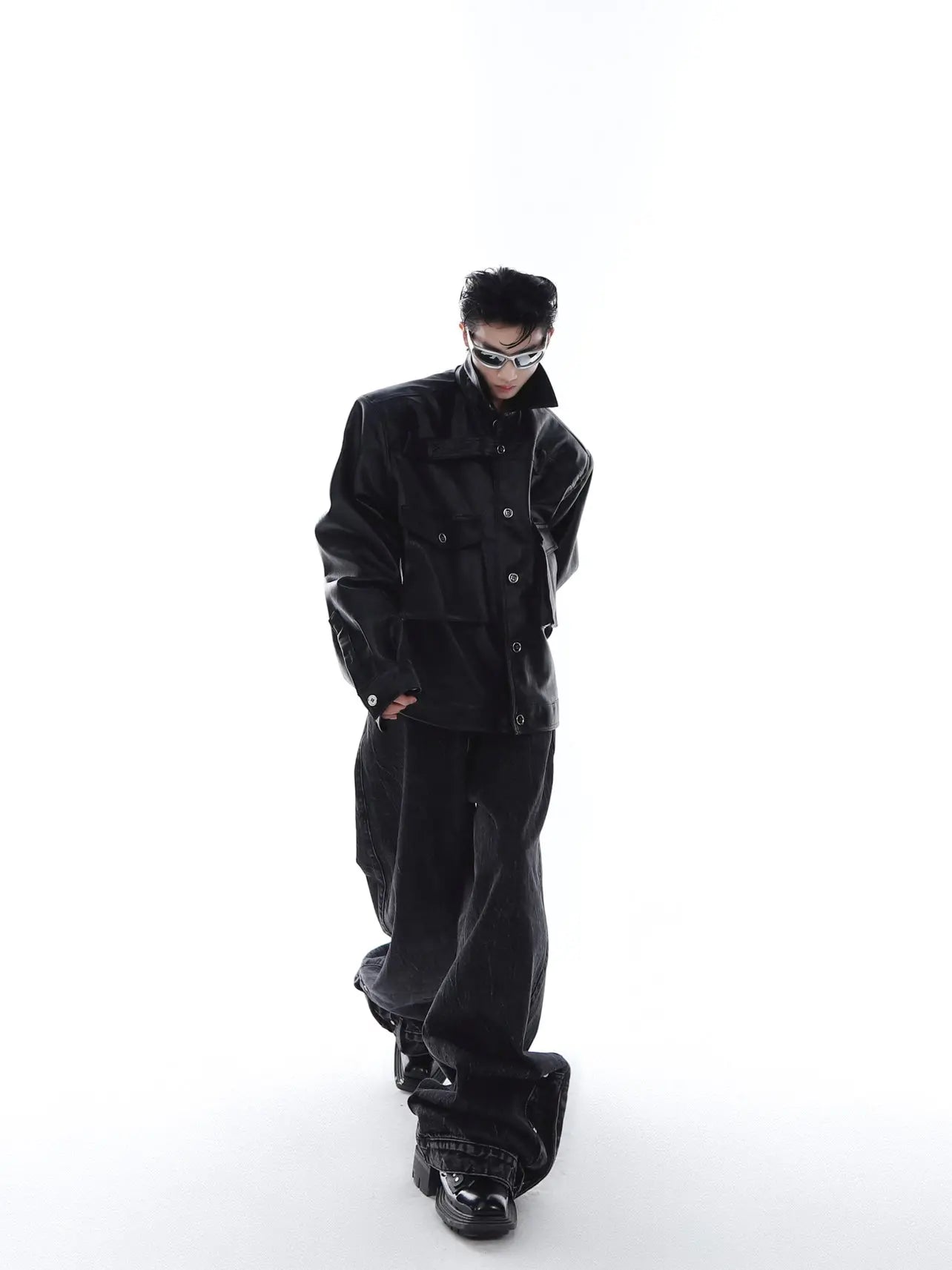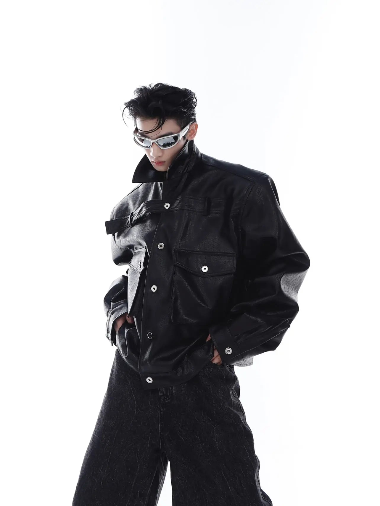 【23s Feb.】Large Pocket High Shoulder Leather Jacket