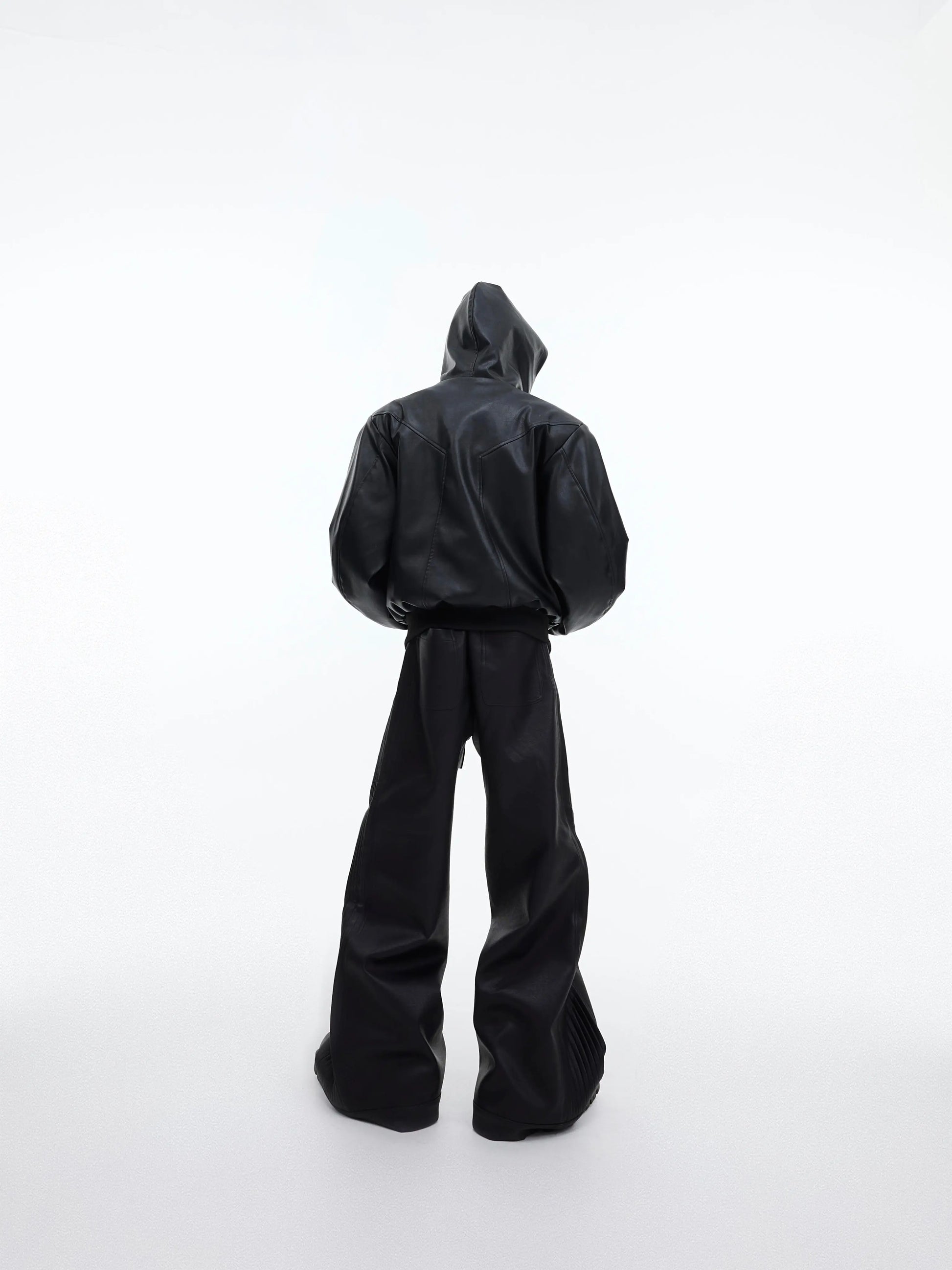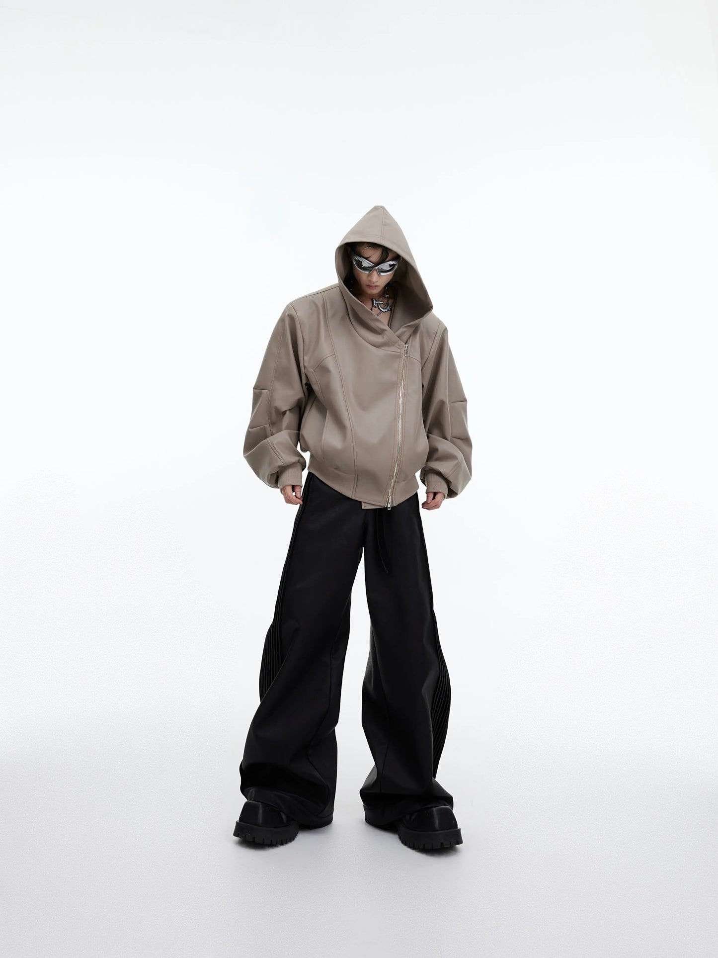 【23s September.】Niche Design Zip Hooded Leather Jacket