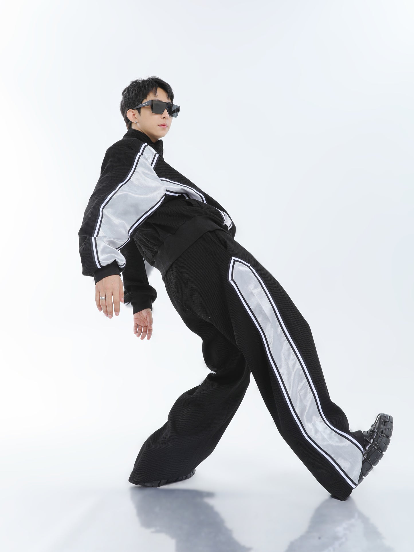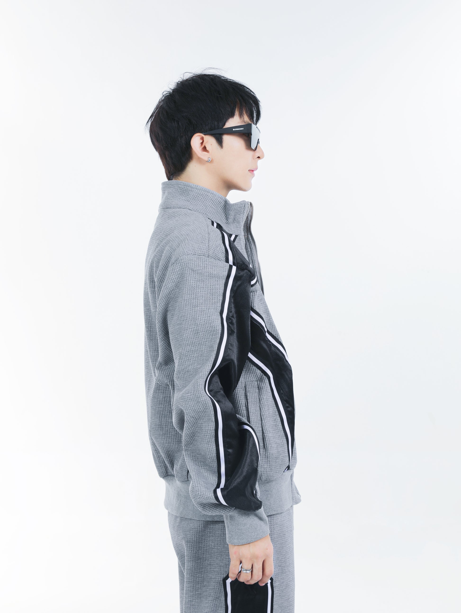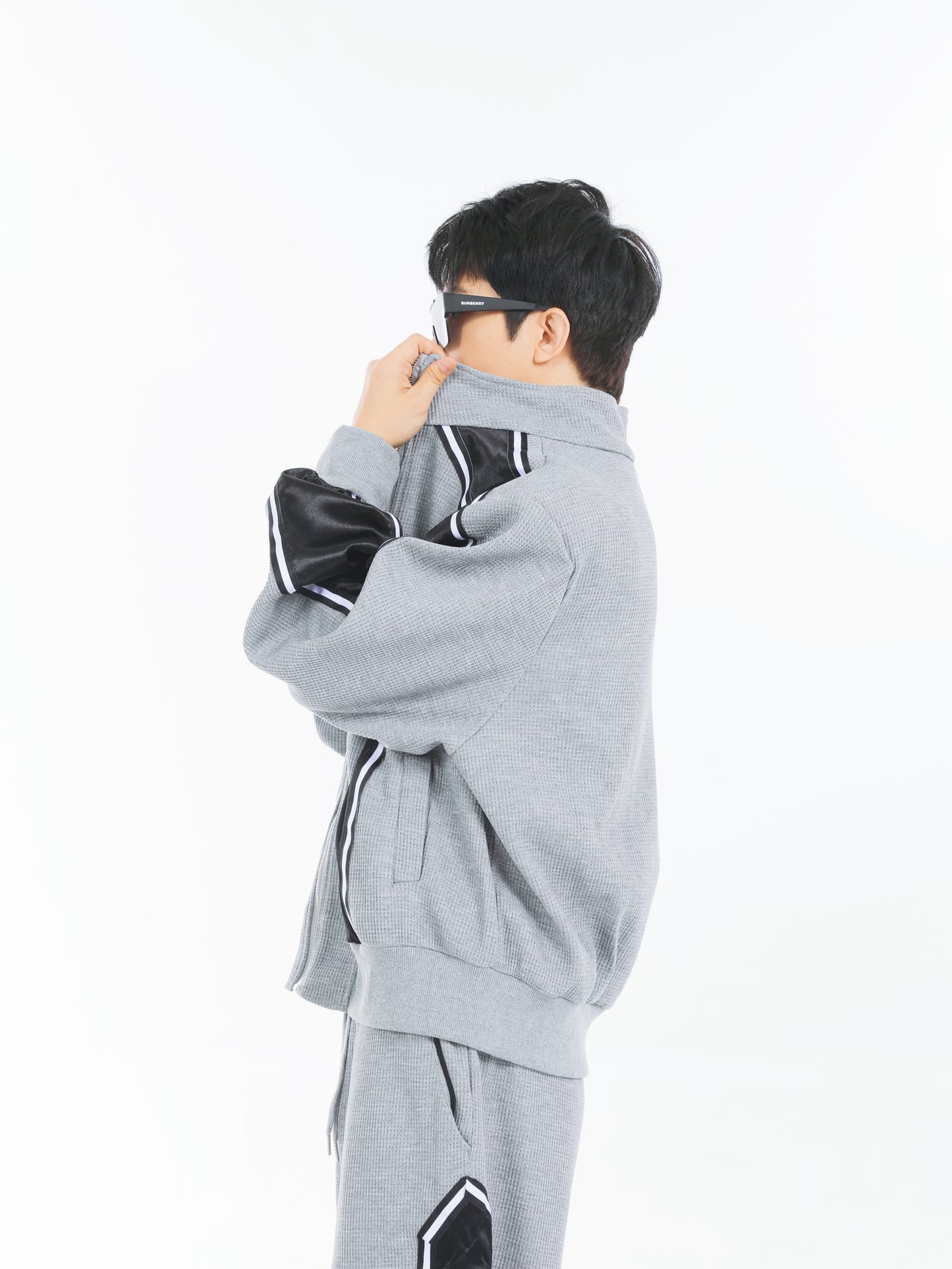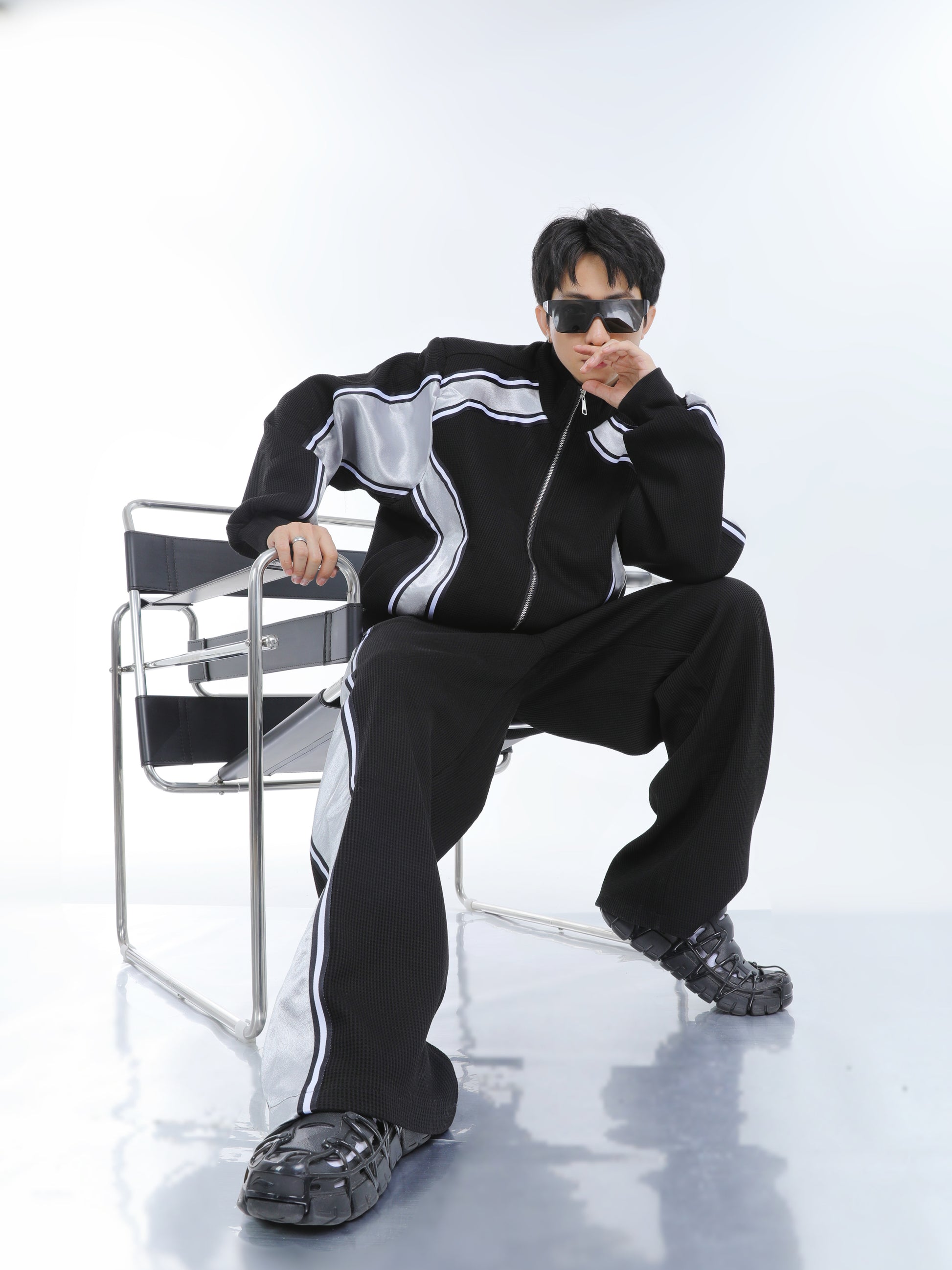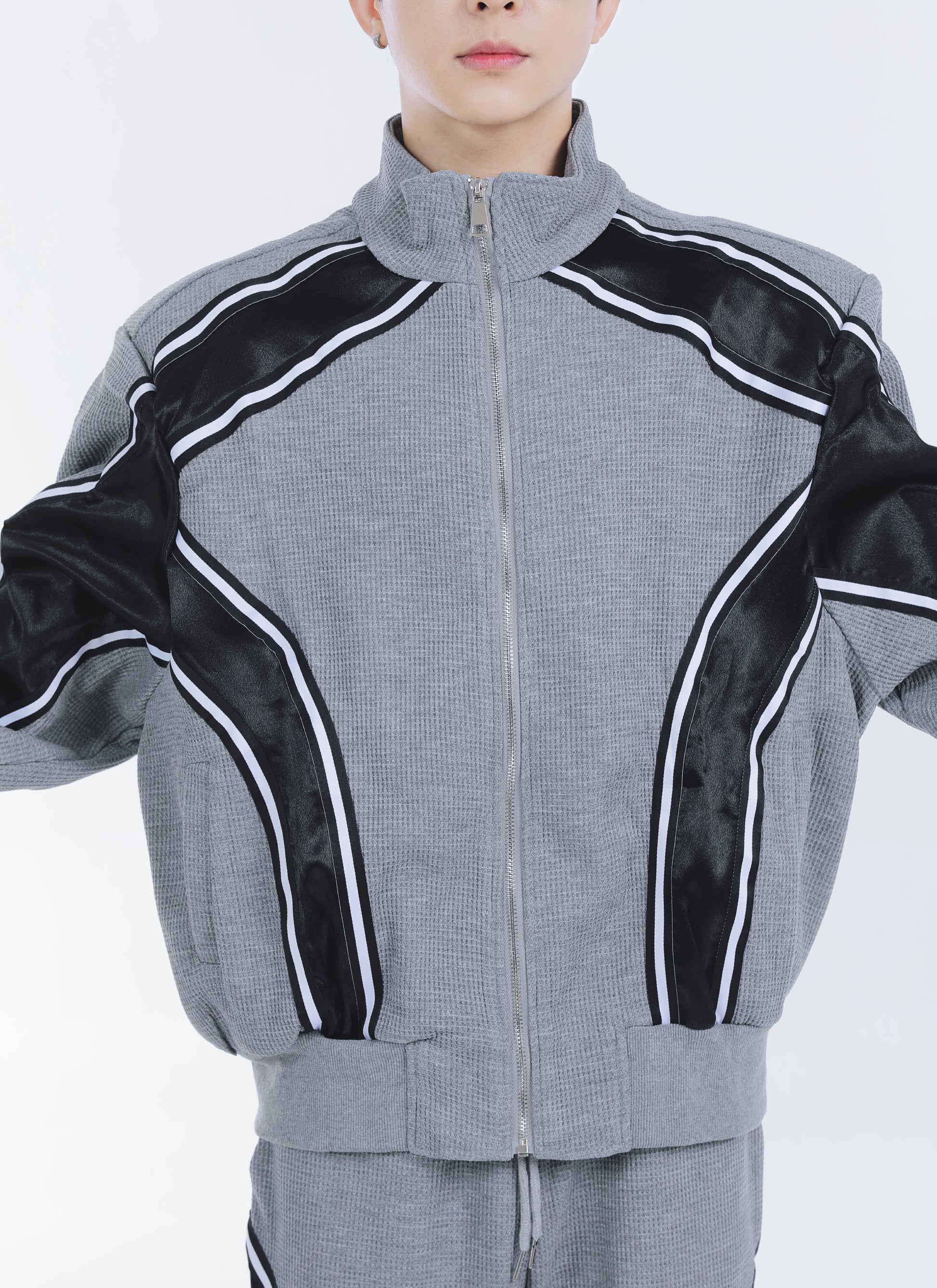 【23s September.】Striped Patchwork Waffle Sweatshirt Wide-Leg Pants Suit
