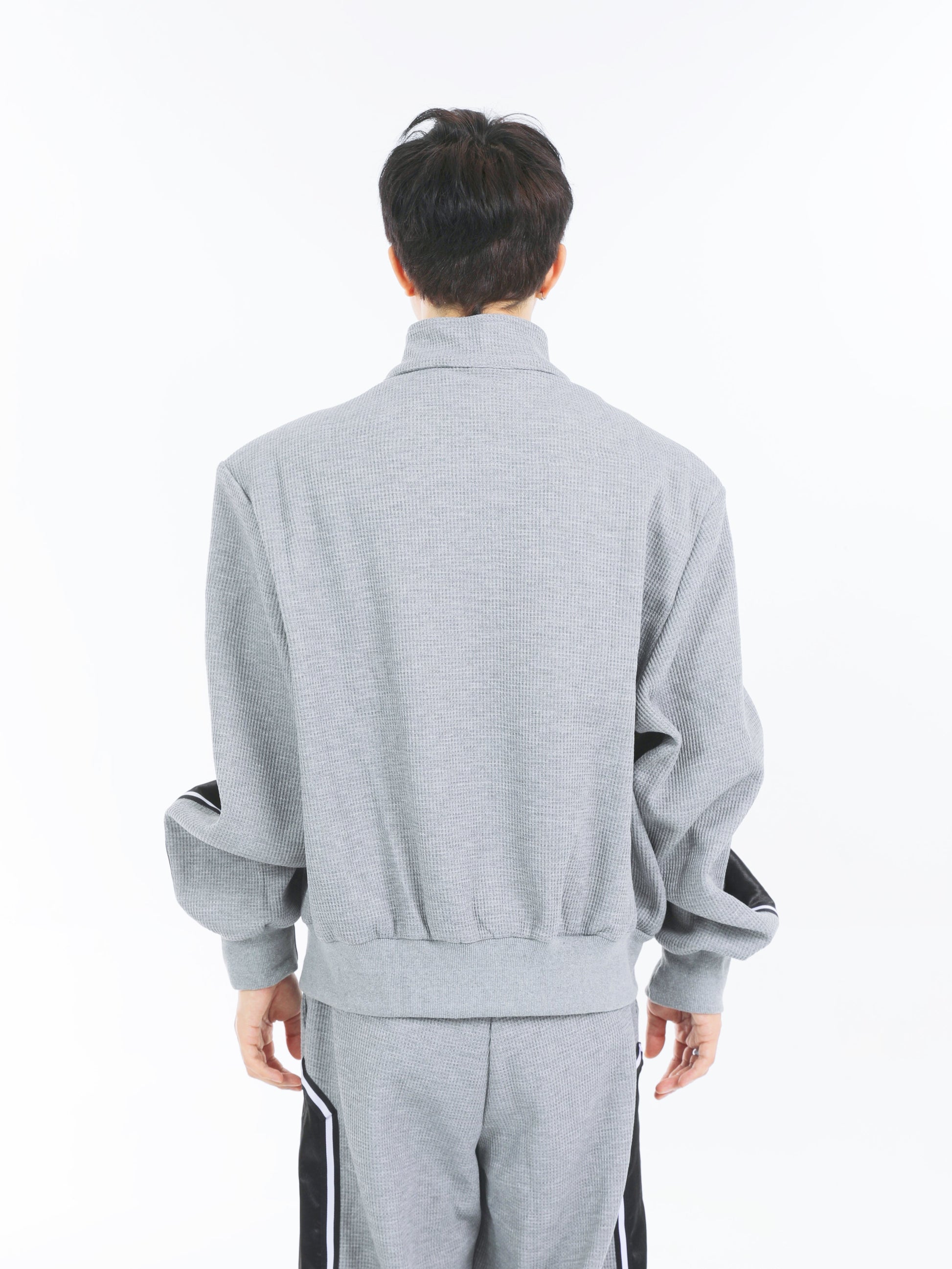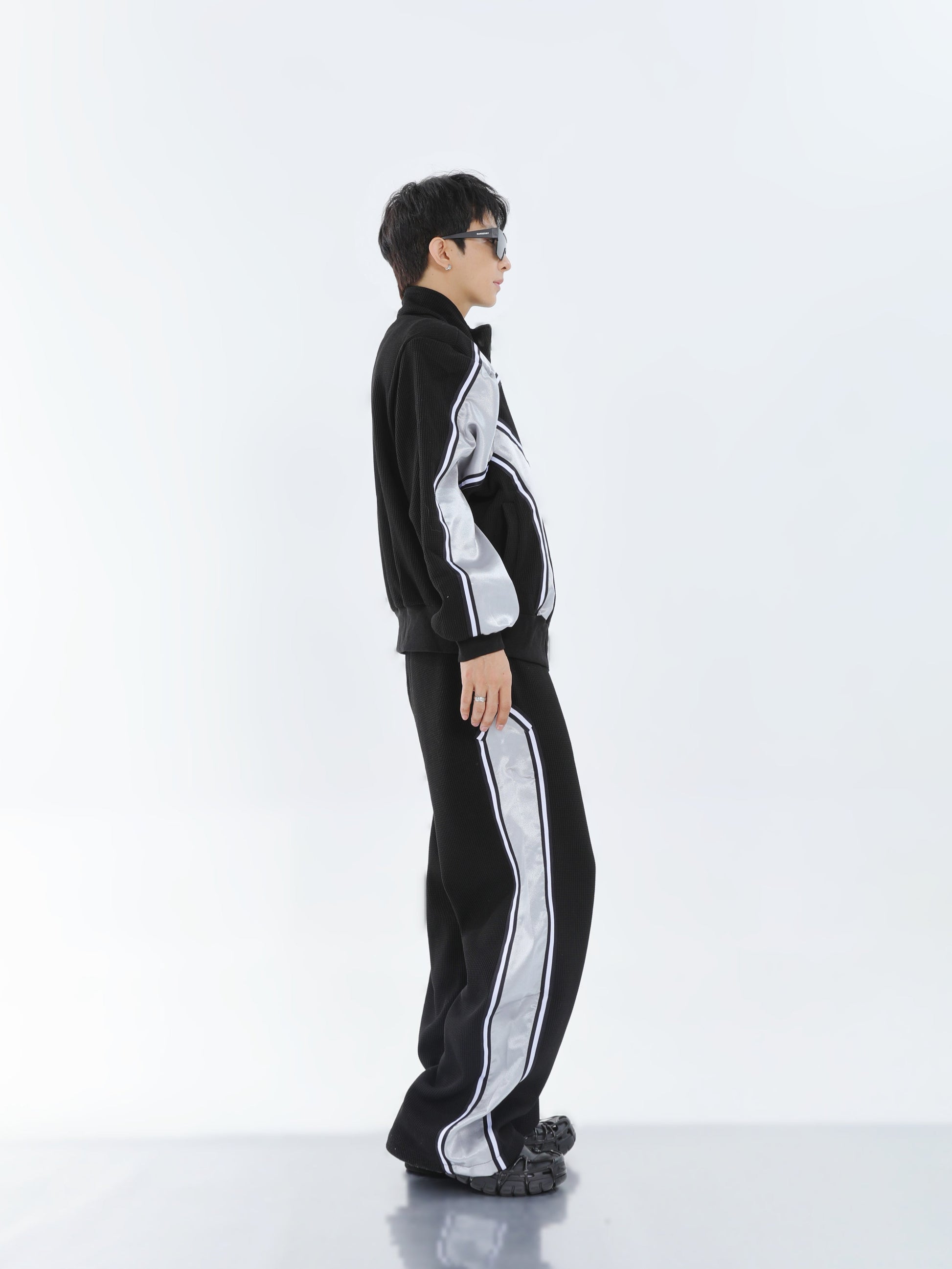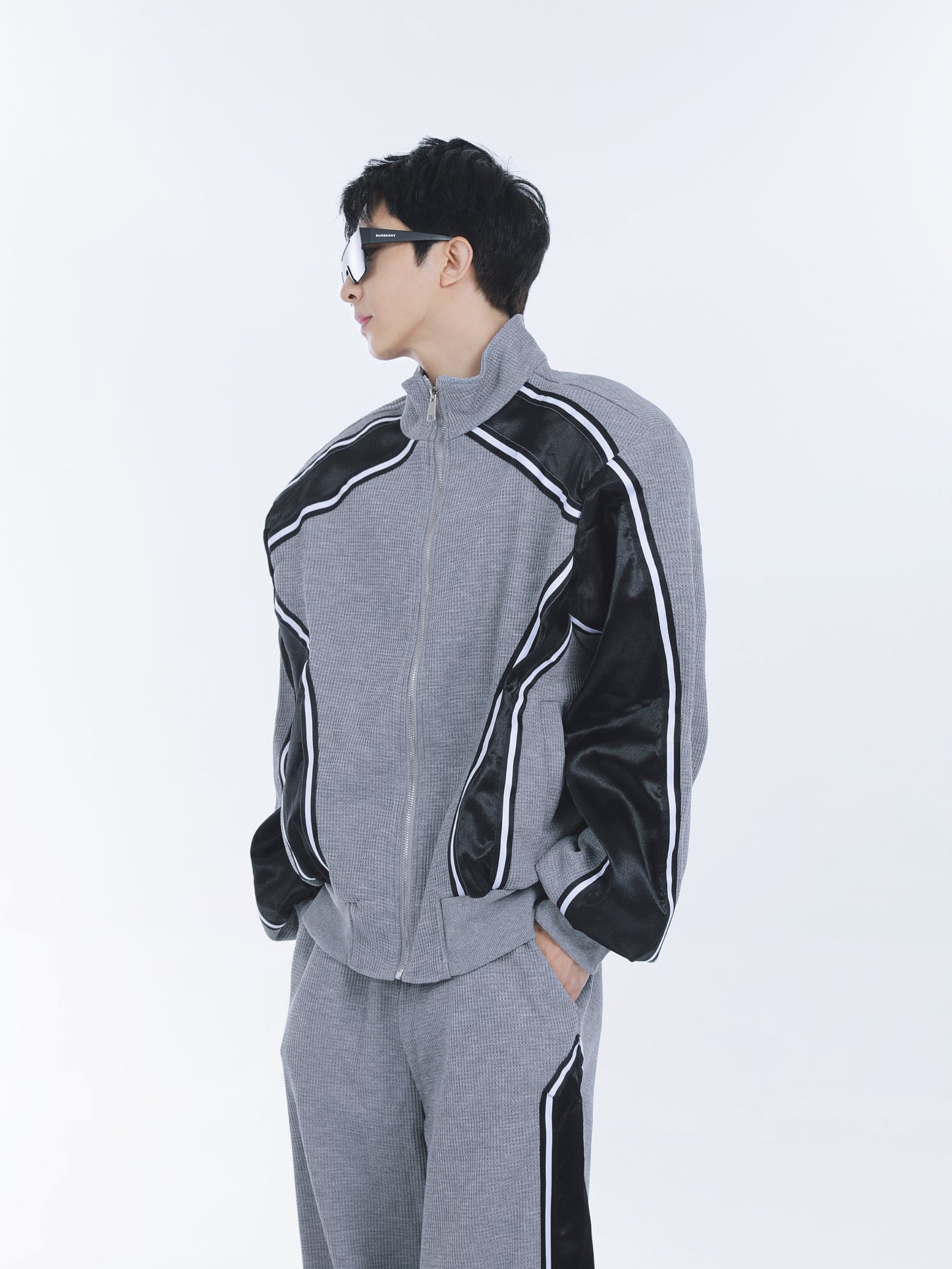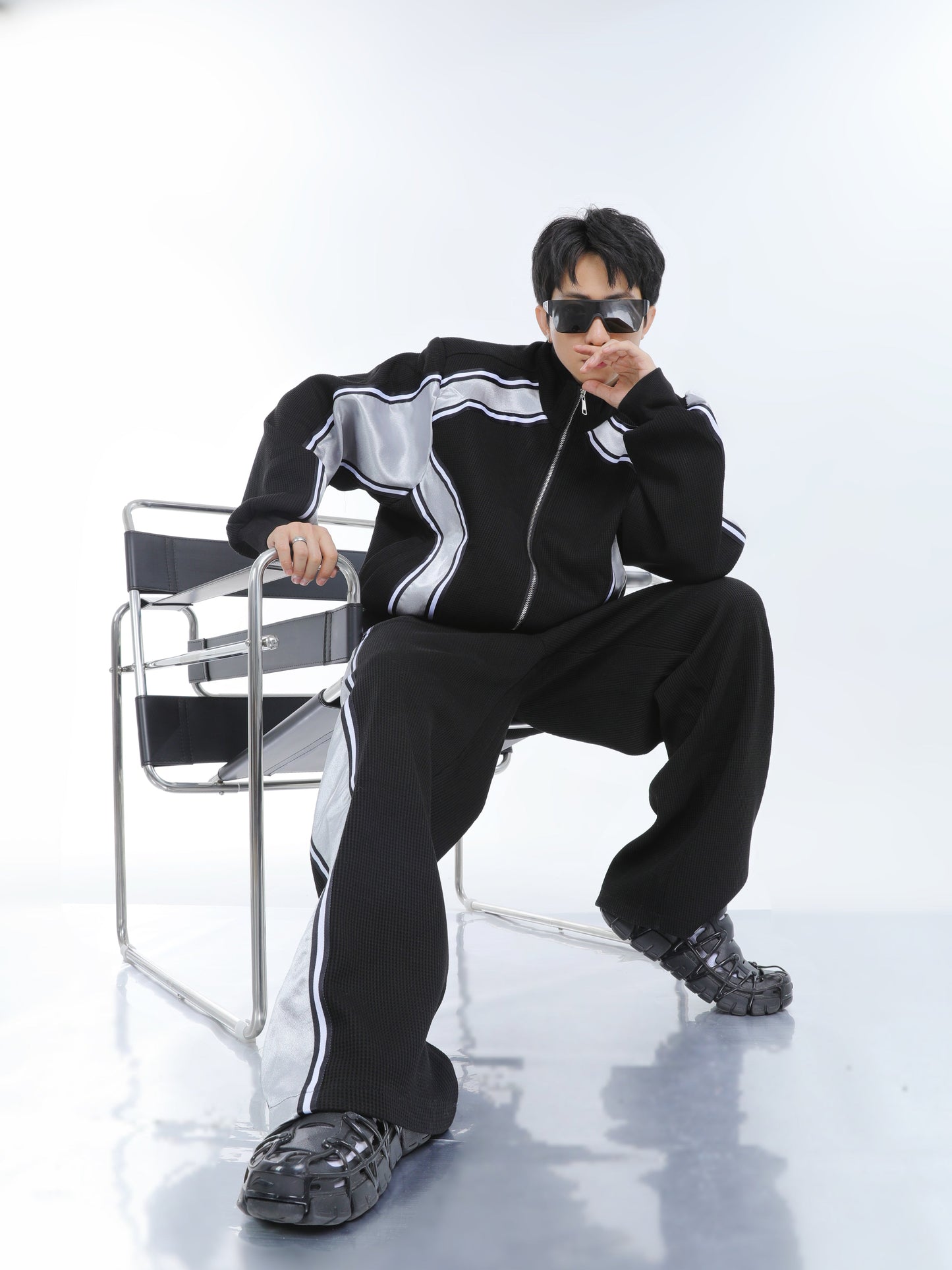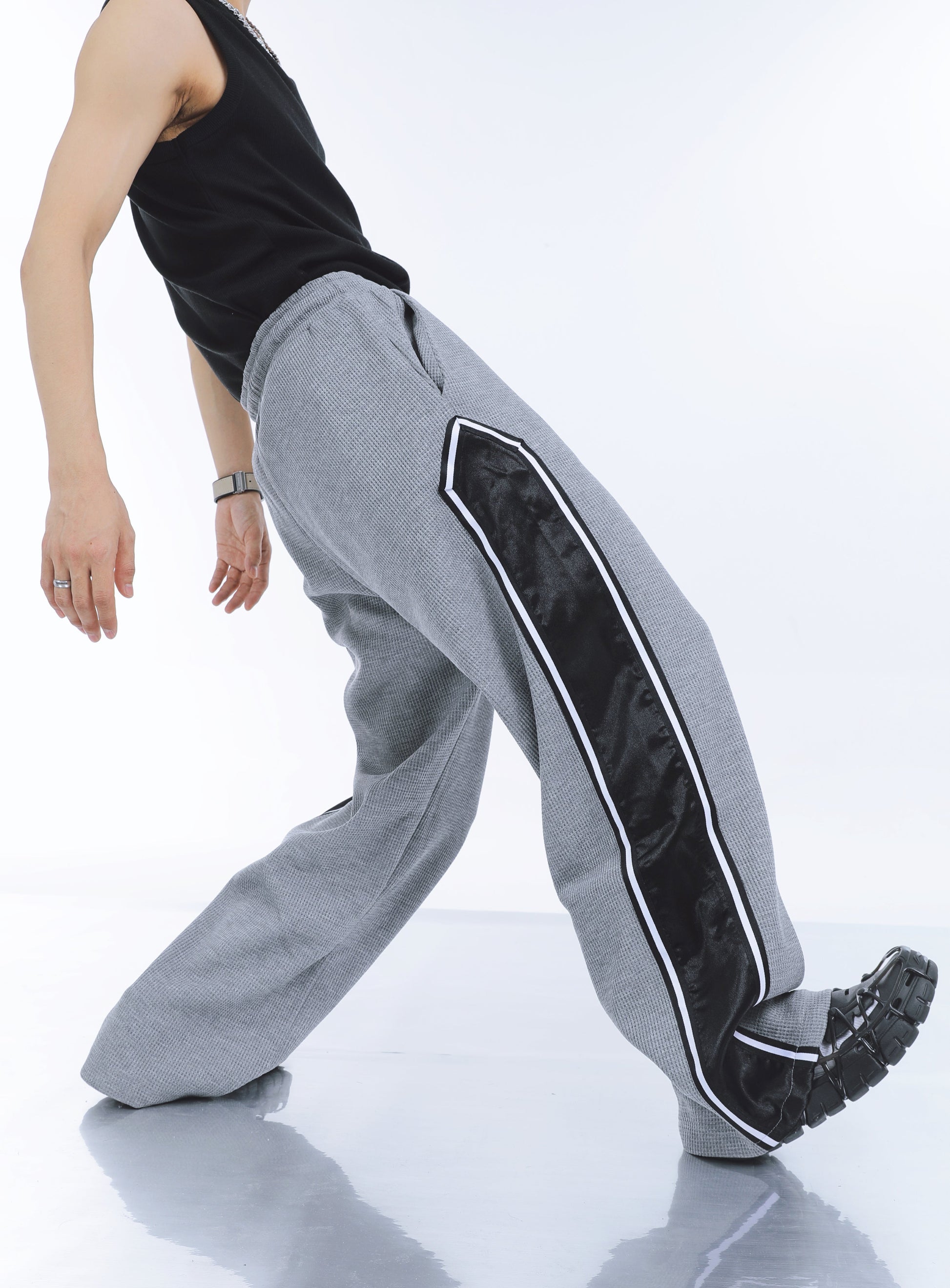 【23s September.】Striped Patchwork Waffle Sweatshirt Wide-Leg Pants Suit -M