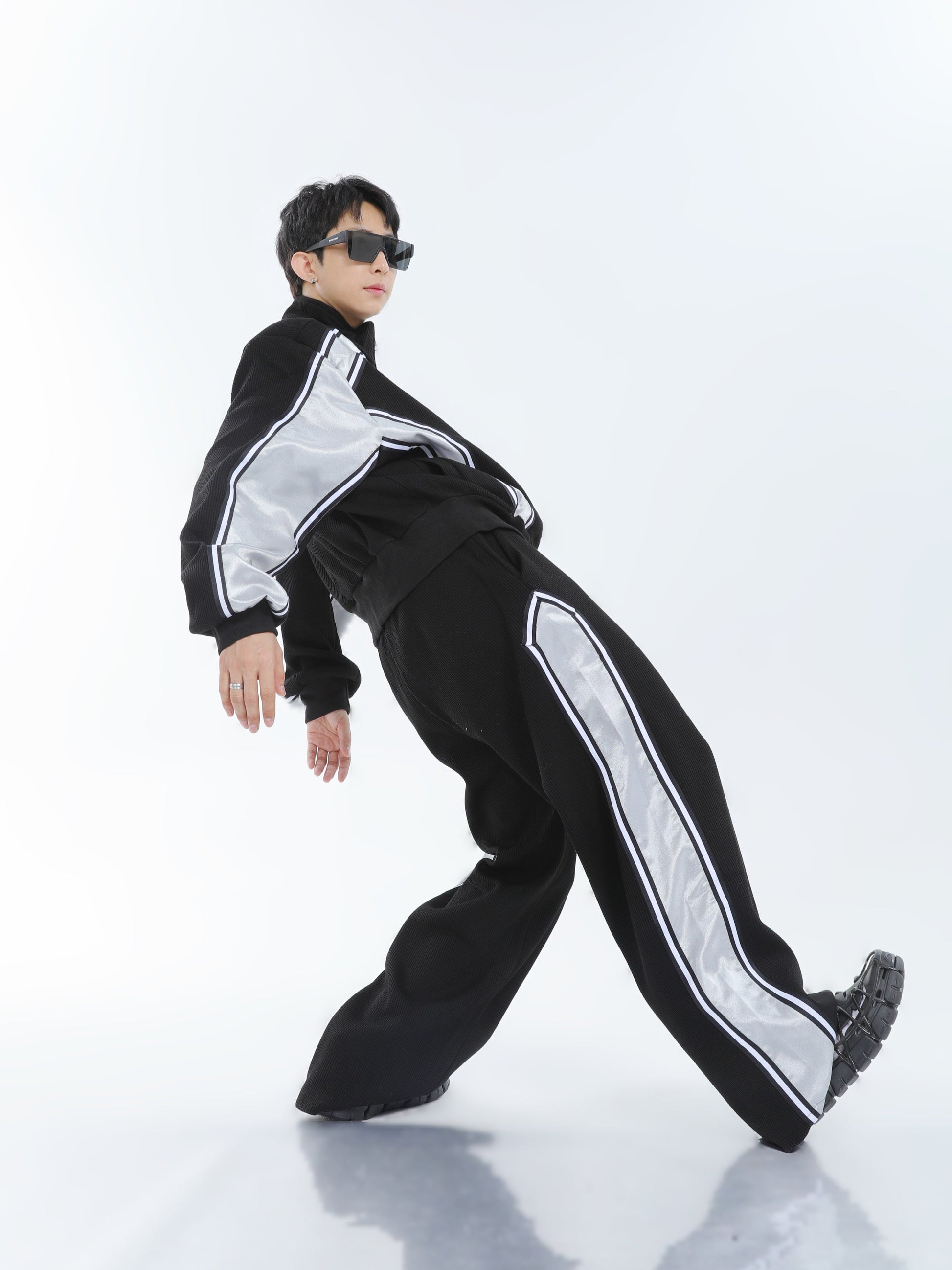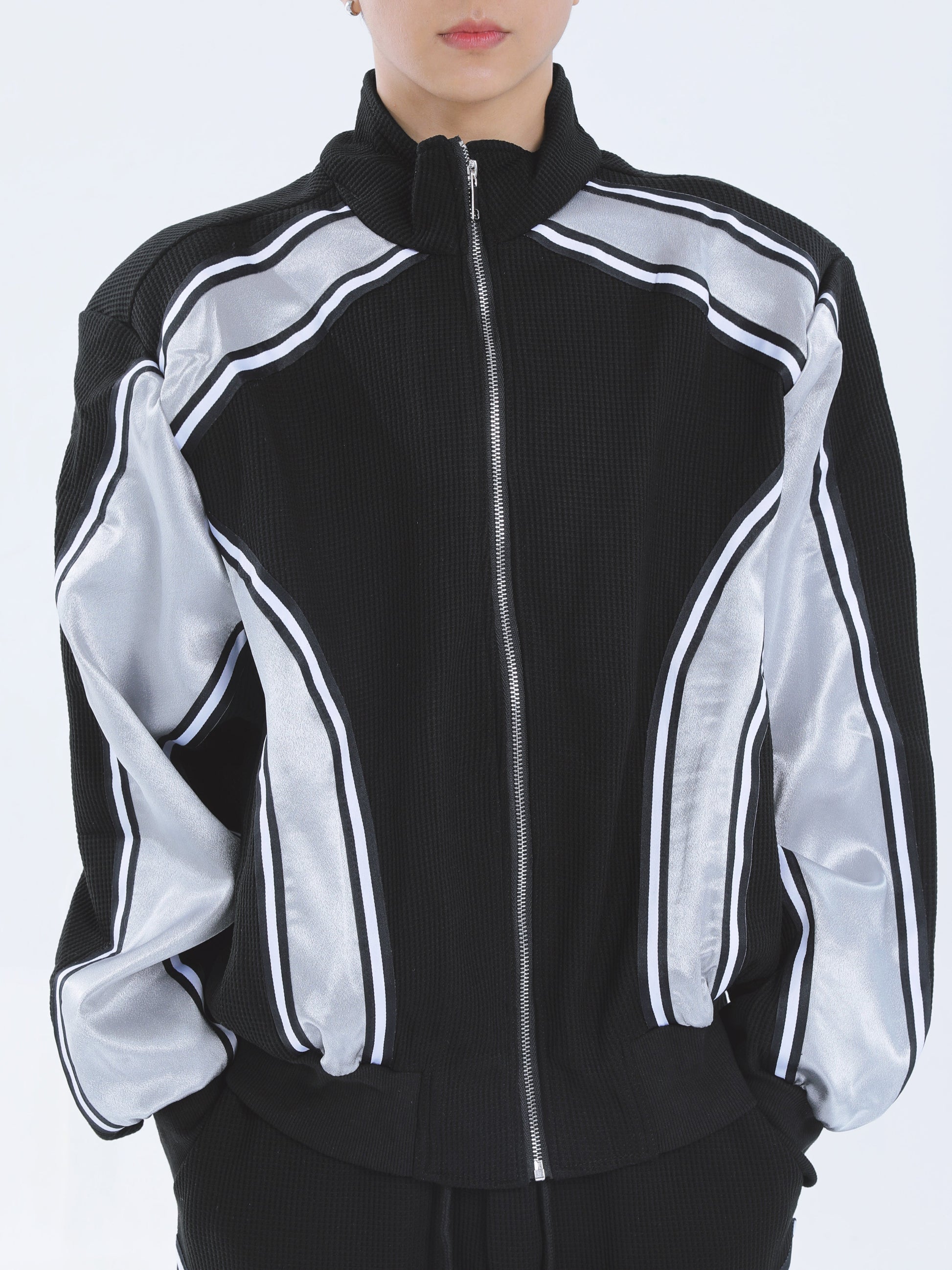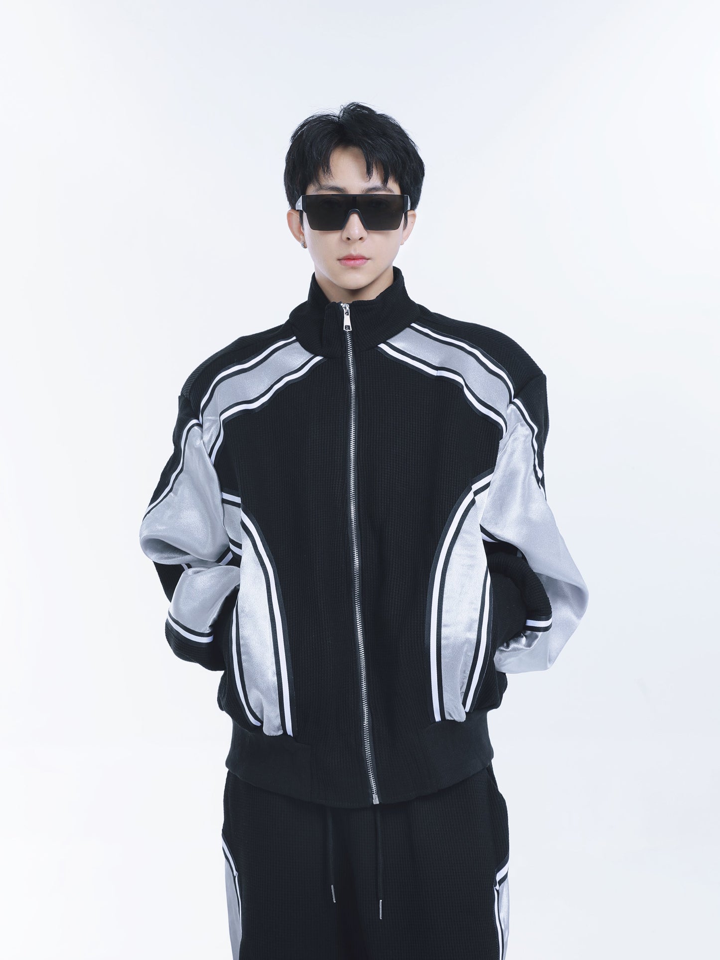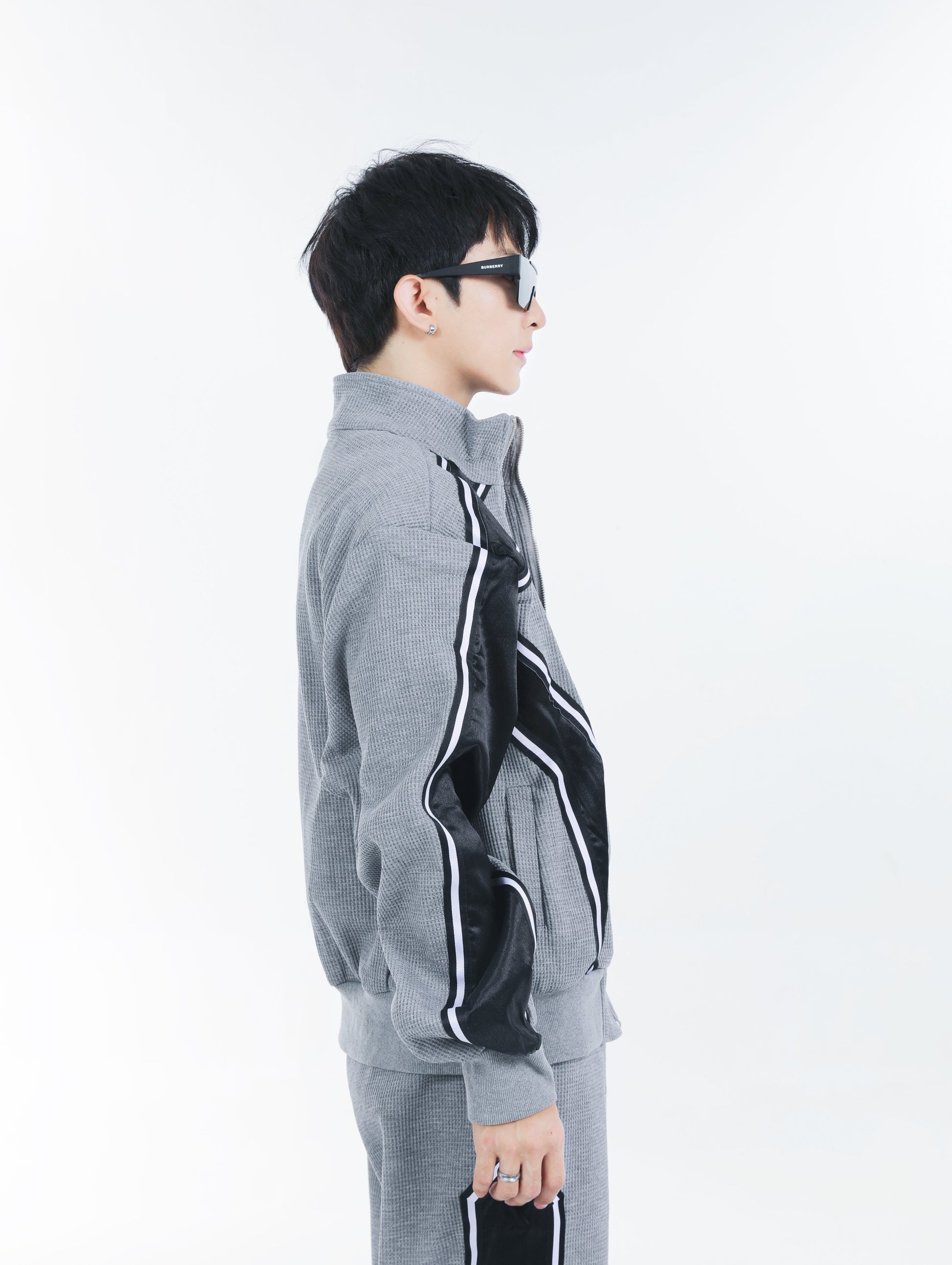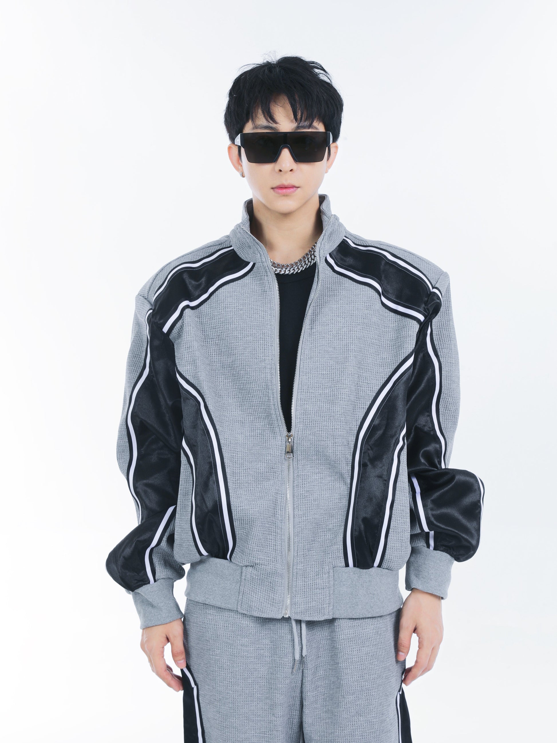 【23s September.】Striped Patchwork Waffle Sweatshirt Wide-Leg Pants Suit -M