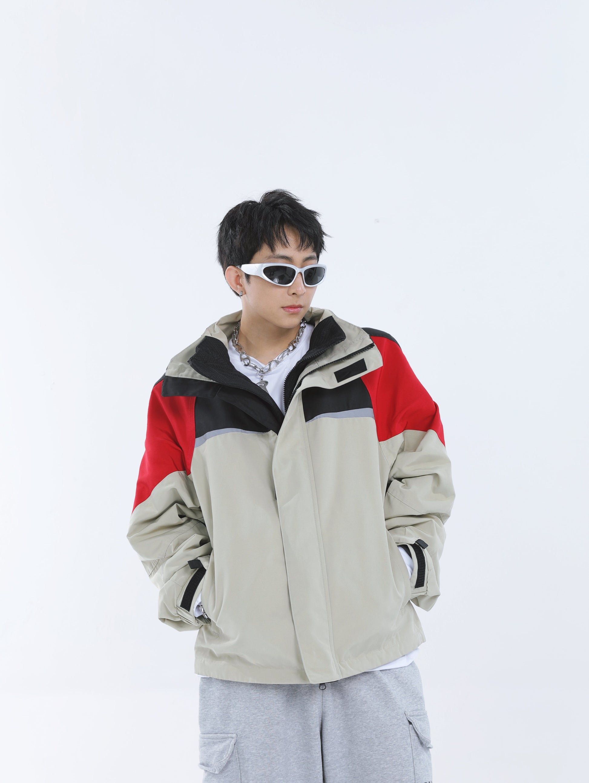 【23s September.】Workwear Retro Patchwork Design Stand Collar Jacket -L