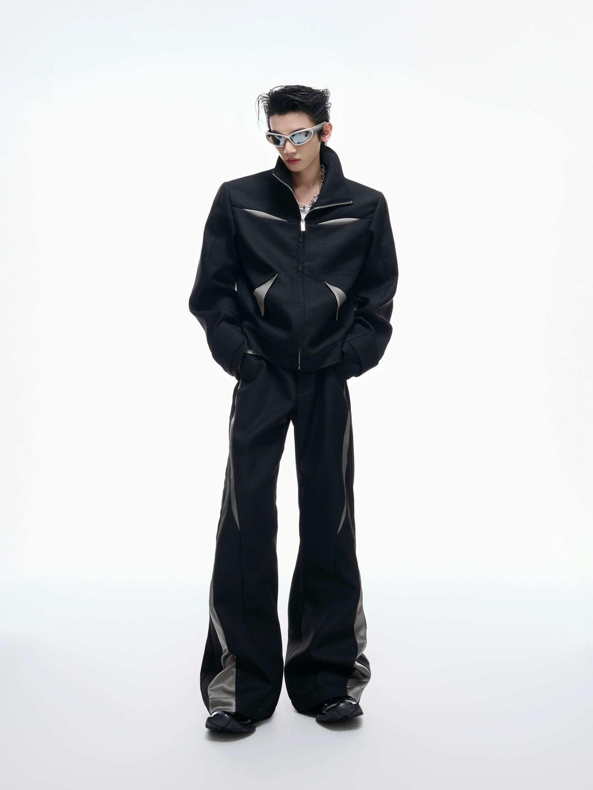 【25s Aug.】Colorblock Patchwork Cropped Jacket and Flared Pants Set
