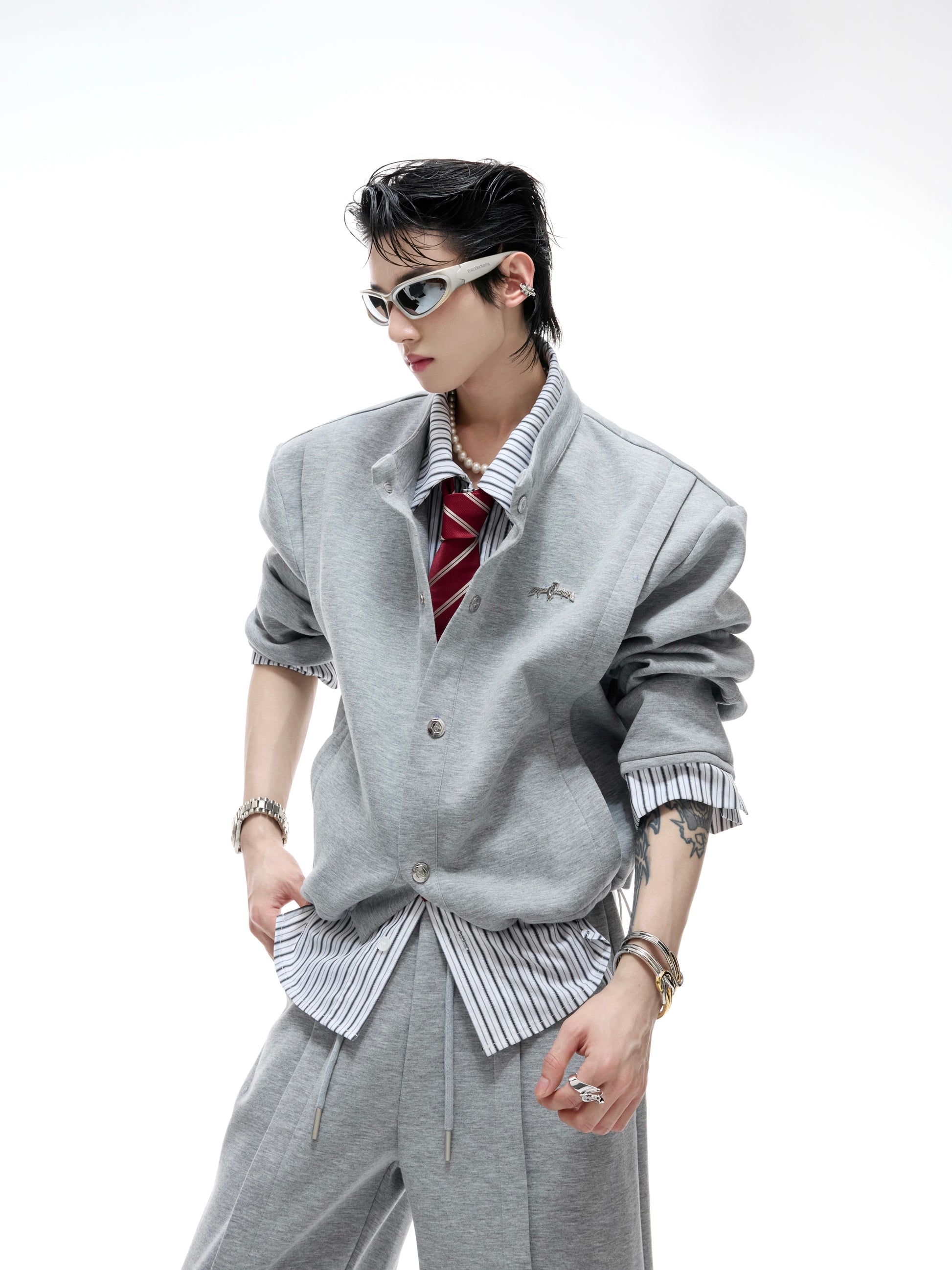【25s Aug.】Mock Two-piece Shirt And Cardigan Hoodie Set