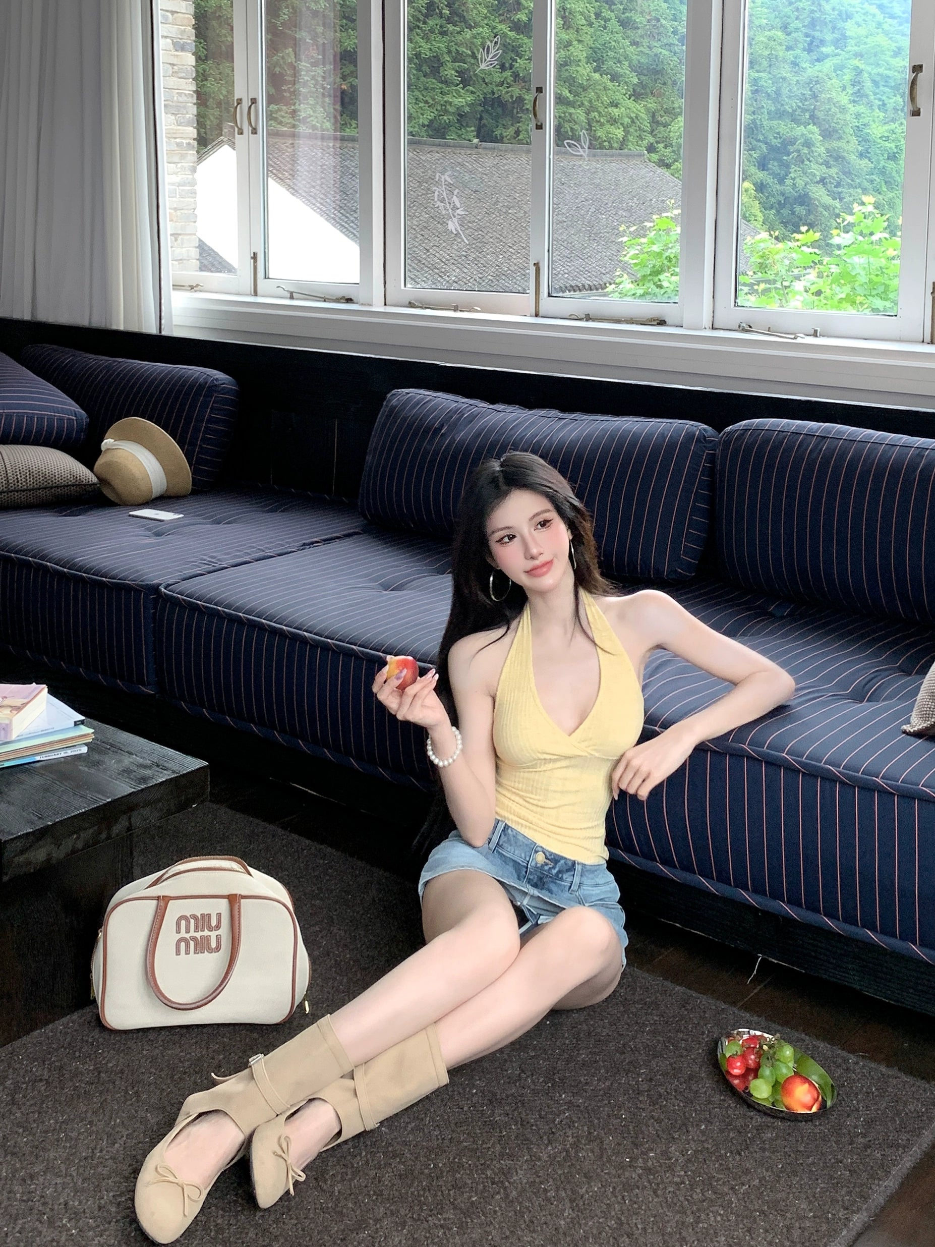 【25s Aug.】Knit Halter V-Neck Cold Shoulder Sleeveless Top
