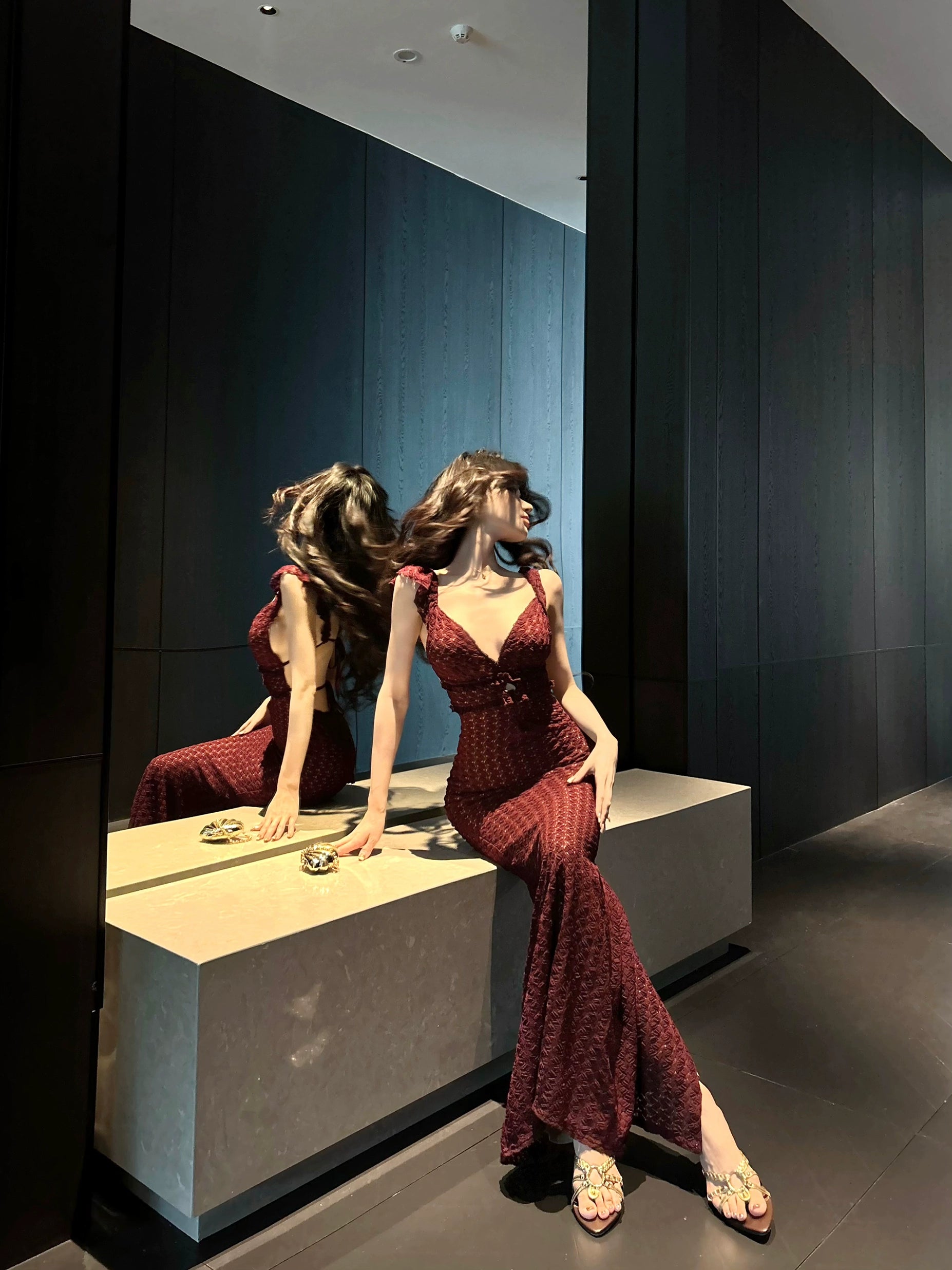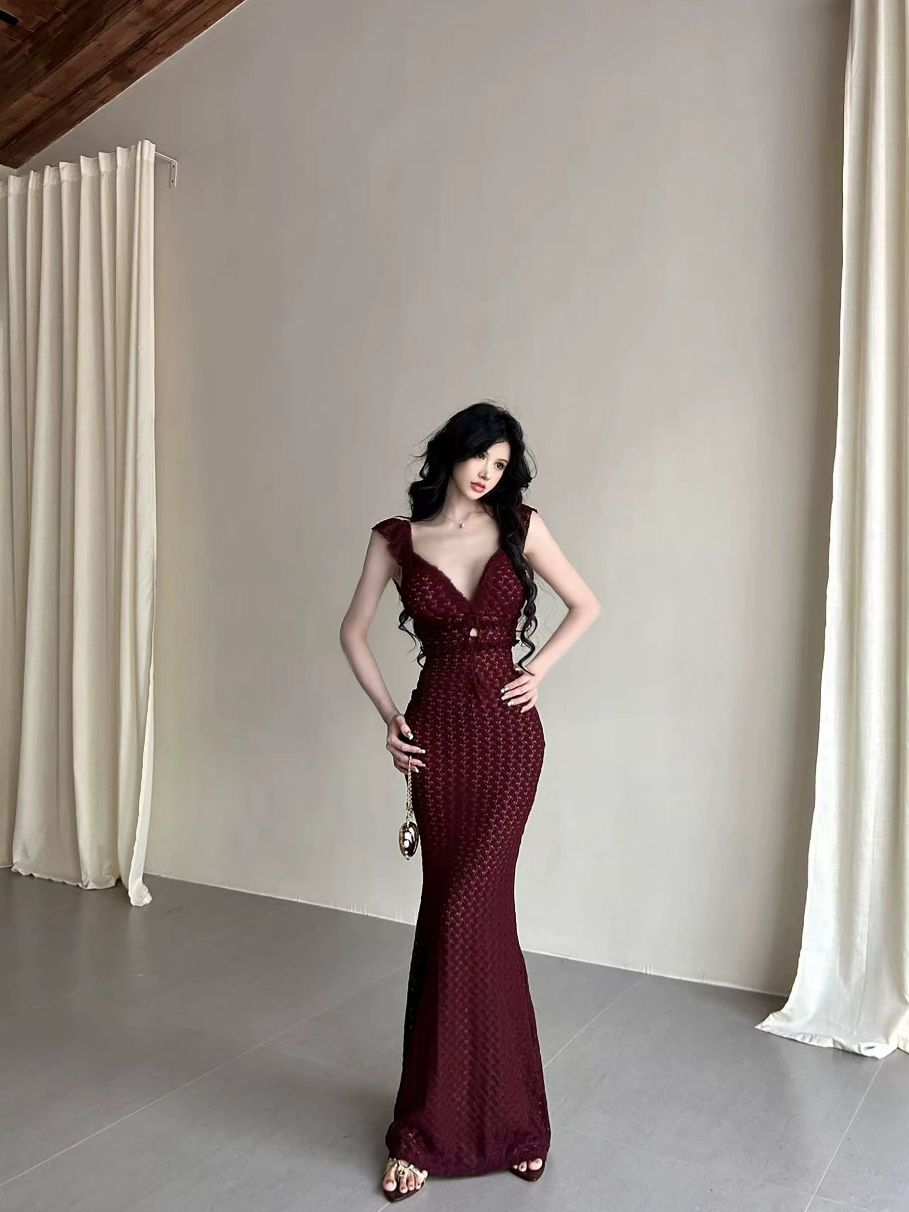 【25s Aug.】Lace Deep V Tie Sexy Waist Hip Dress