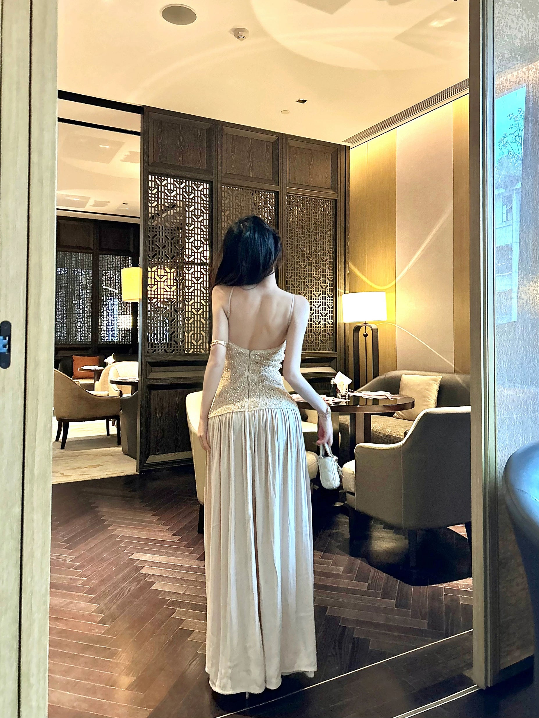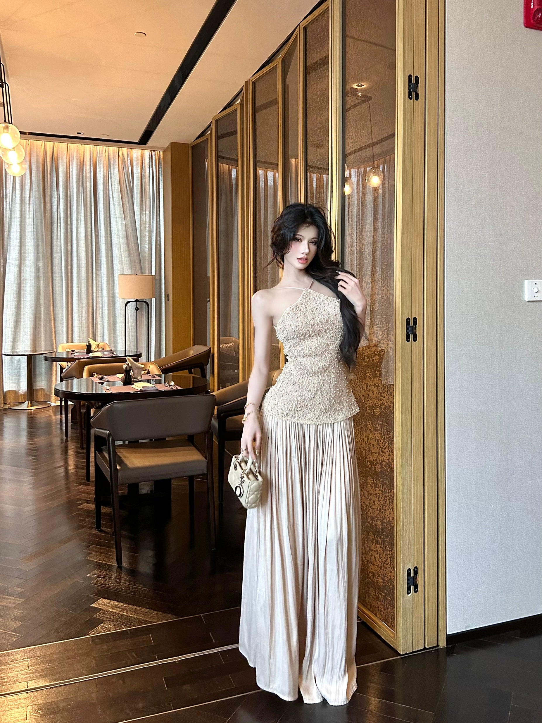 【25s Aug.】Lace Stitching Satin Halterneck Dress
