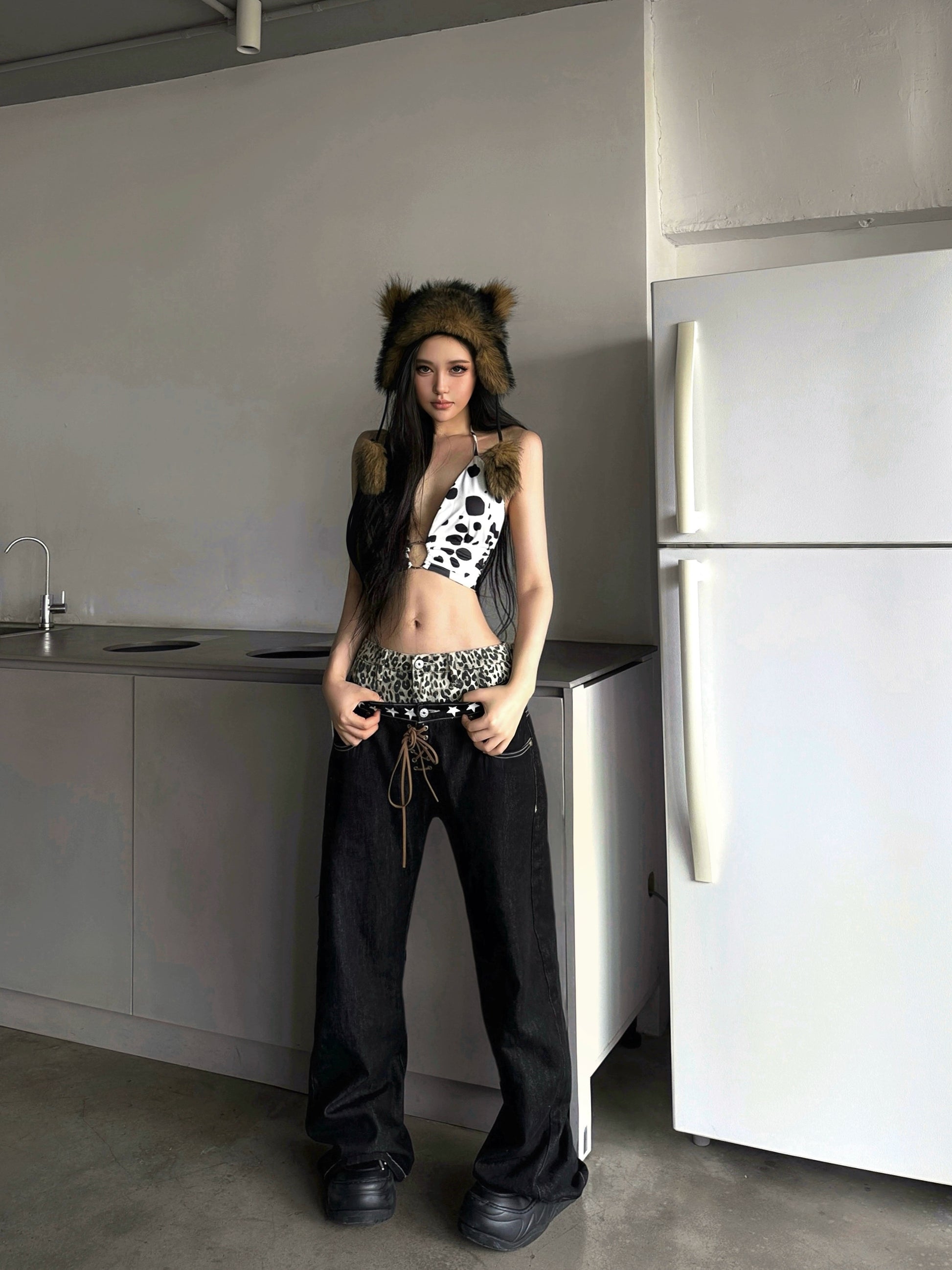 【25s Aug.】Leopard Print Double-Waist Curved Blade Jeans