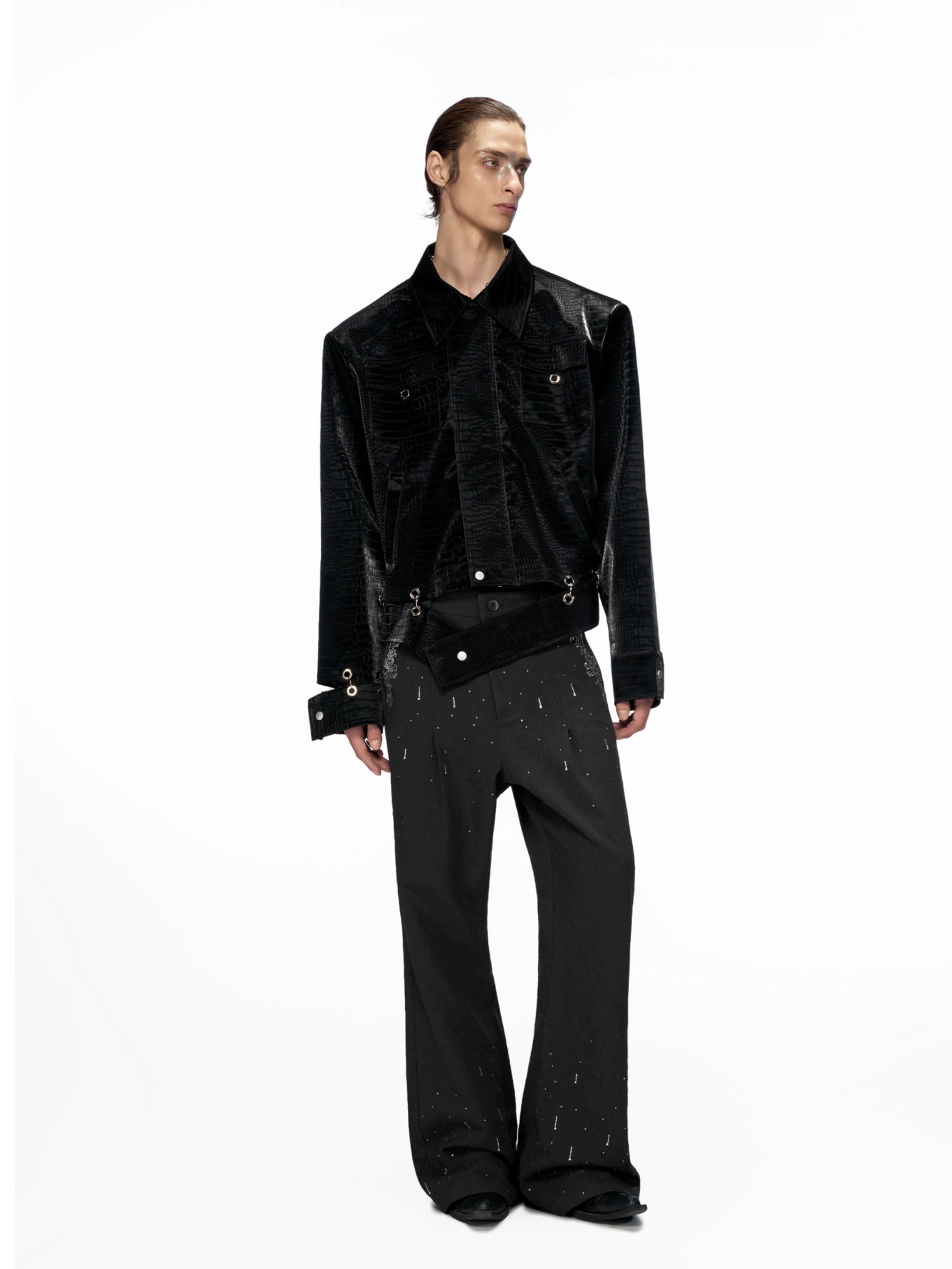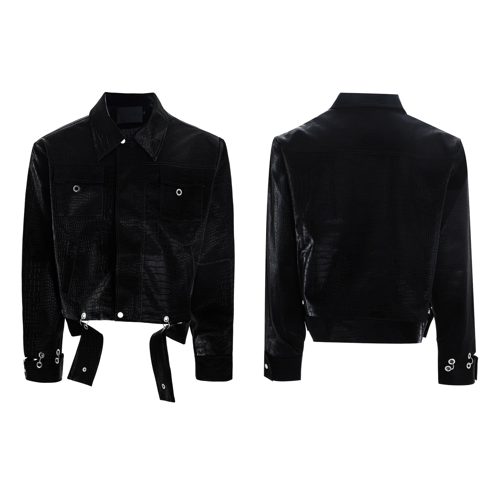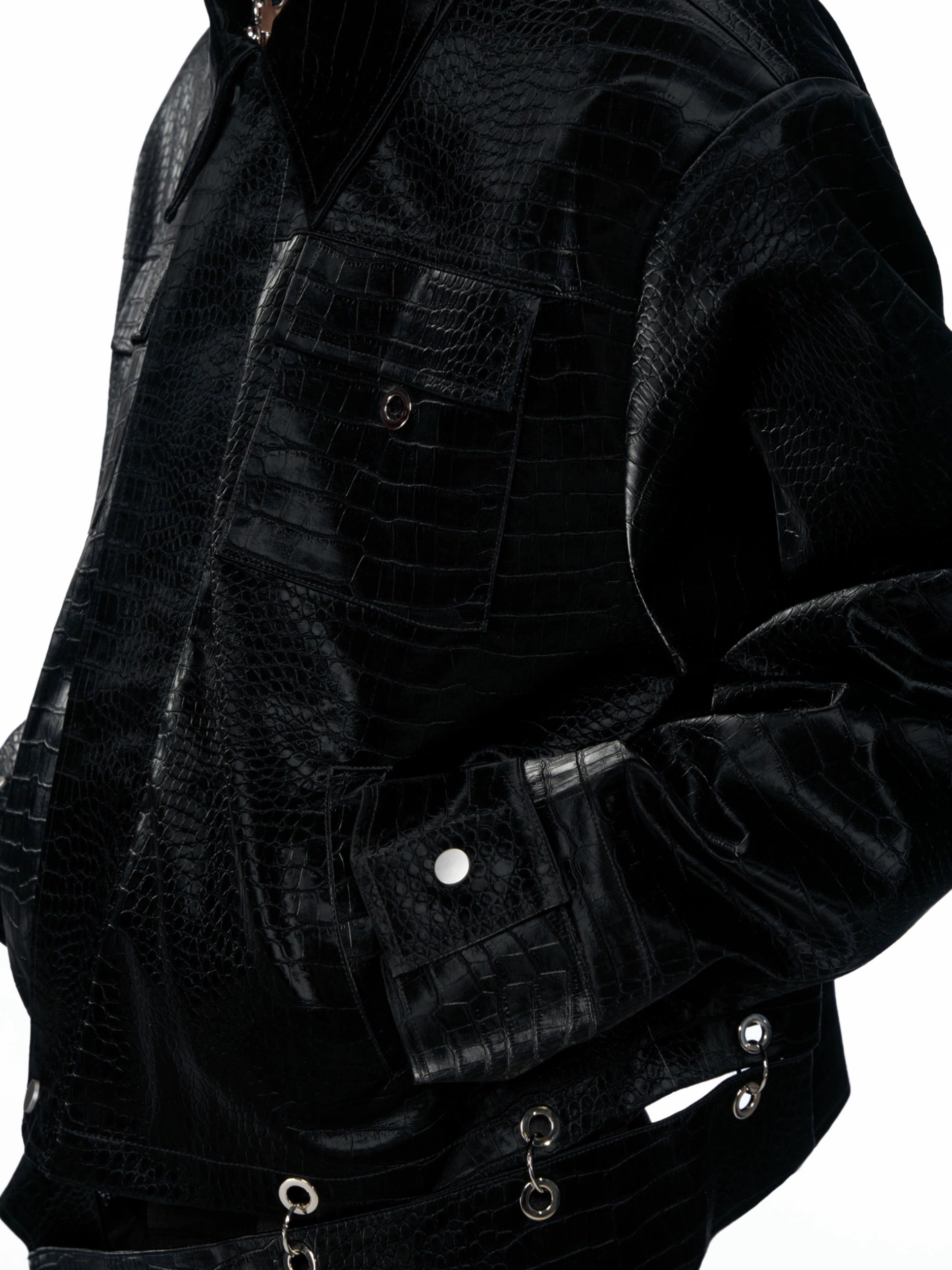 【25s Aug.】Metal-Panel Cropped Croc Leather Jacket