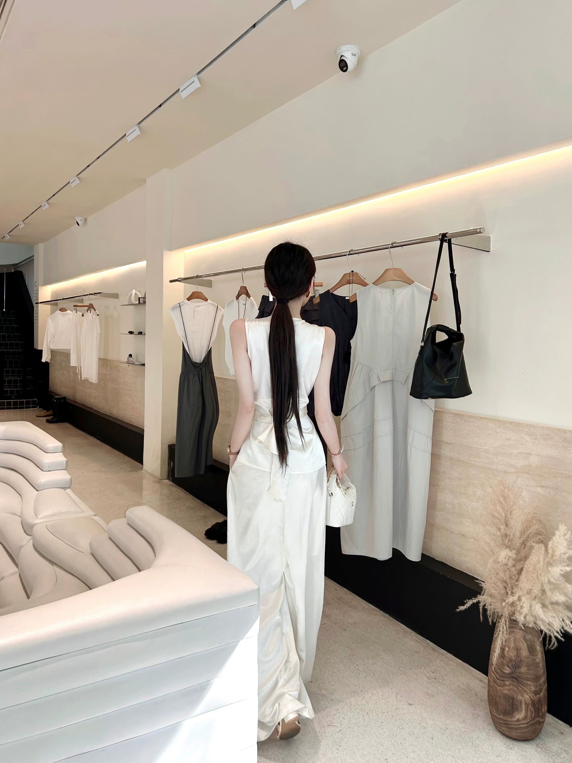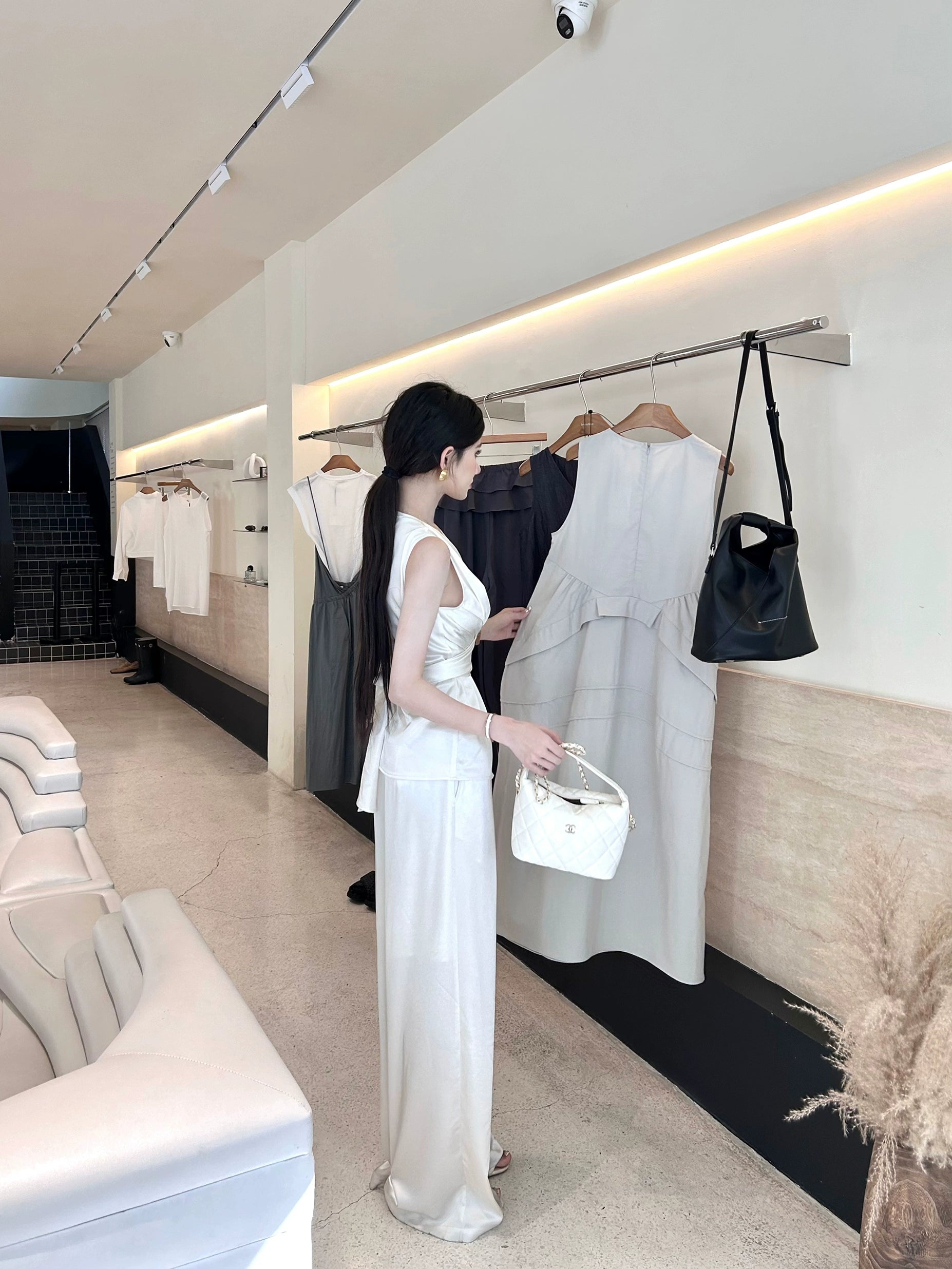 【25s Aug.】Old Money Style V-Neck Silk Sleeveless Top / Loose Pants