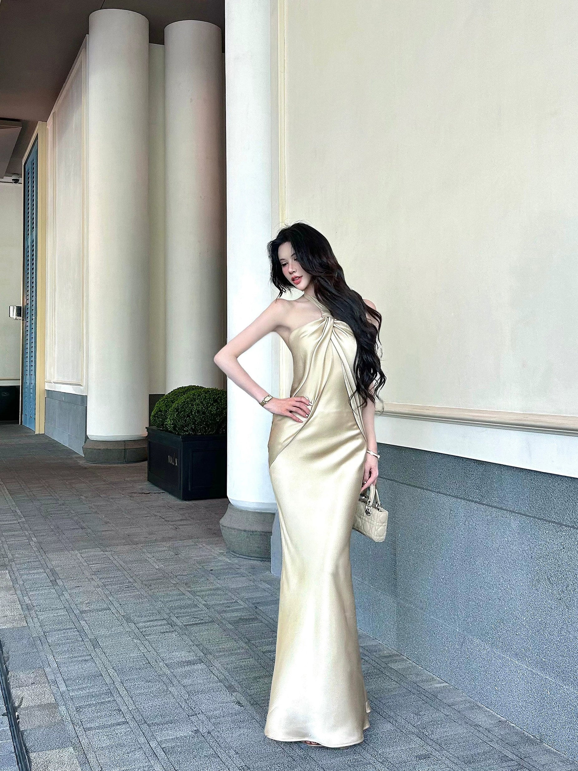 【25s Aug.】Sleeveless Off-Shoulder Halter Dress