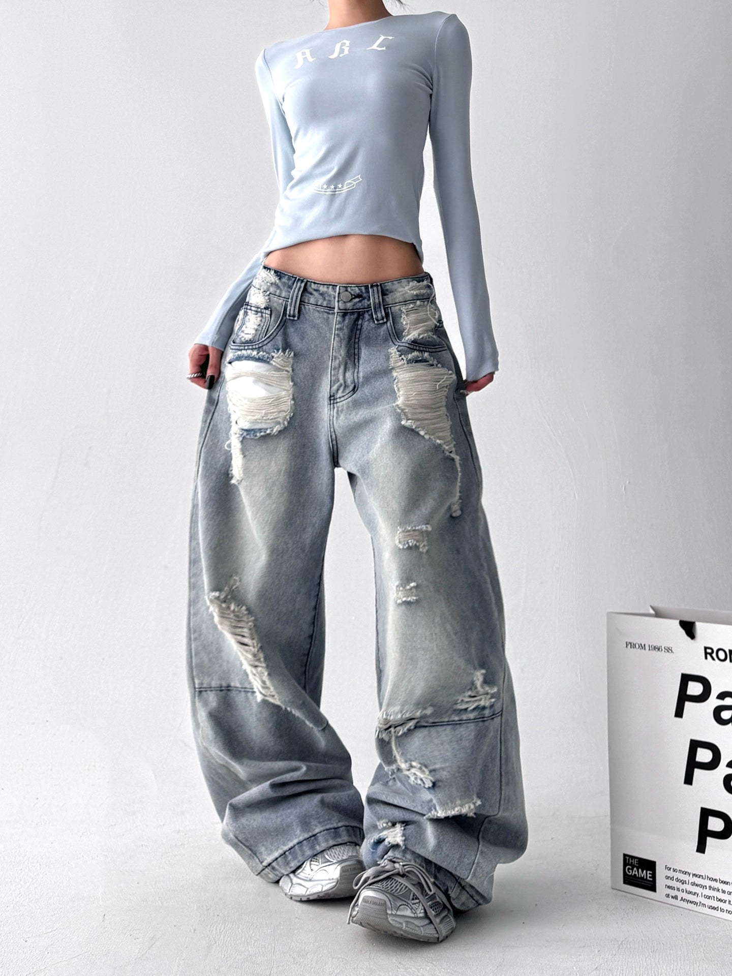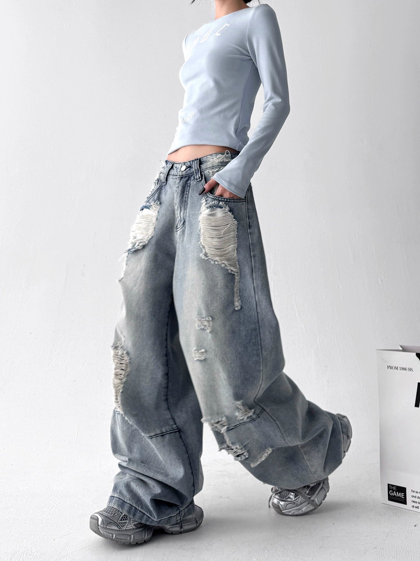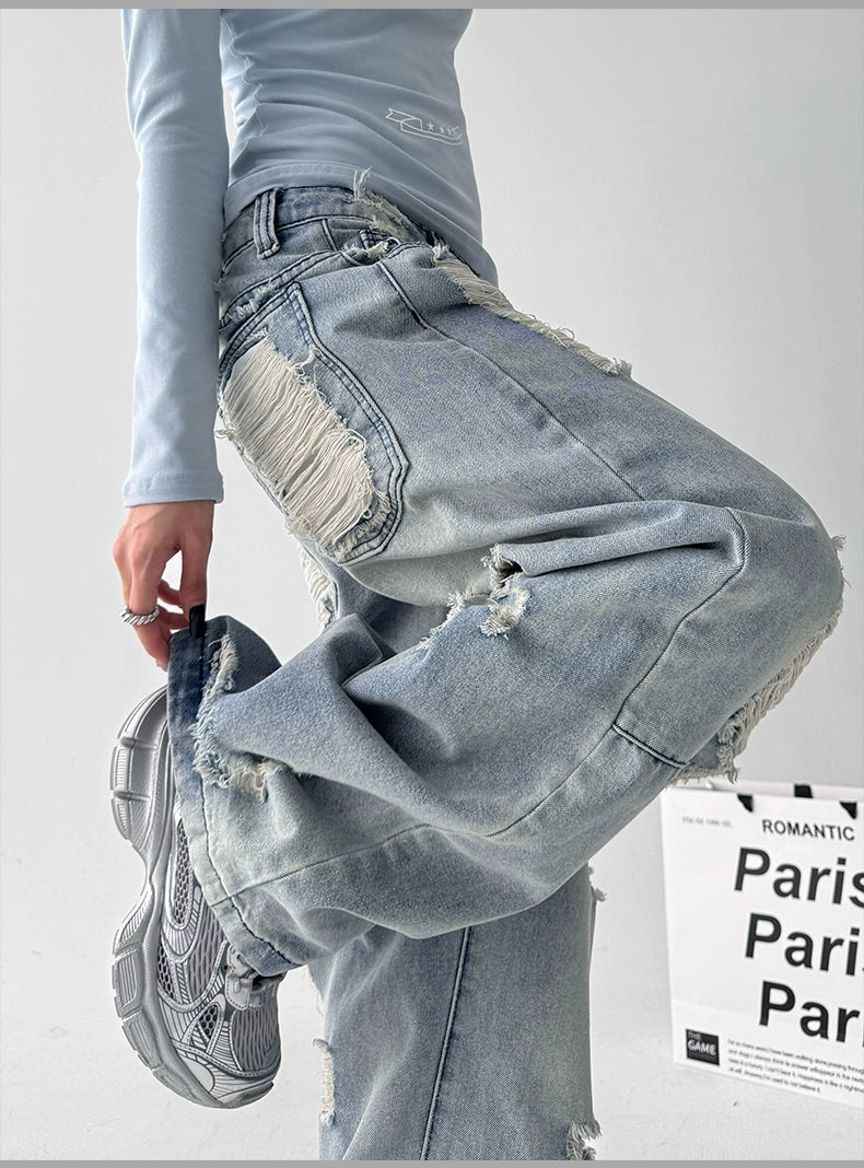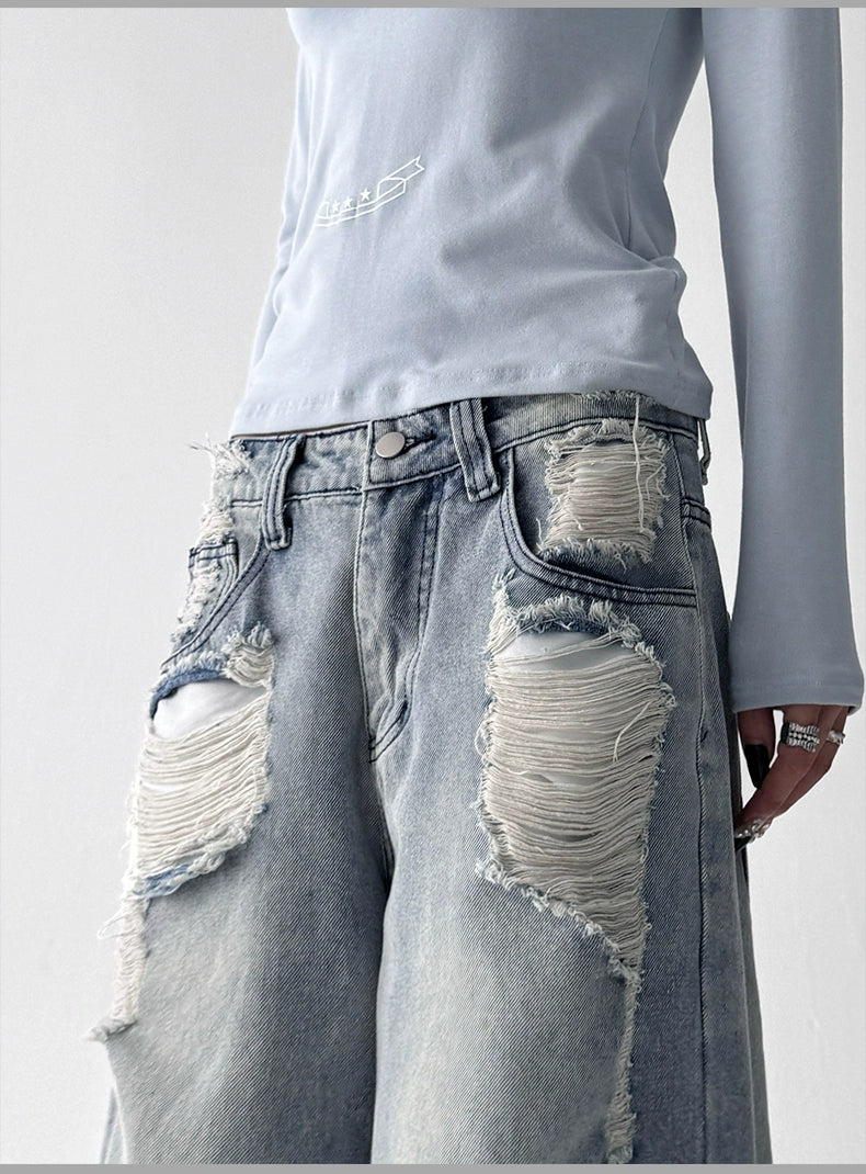 【25s Aug.】Vintage Blue Distressed Washed Loose Wide-Leg Jeans