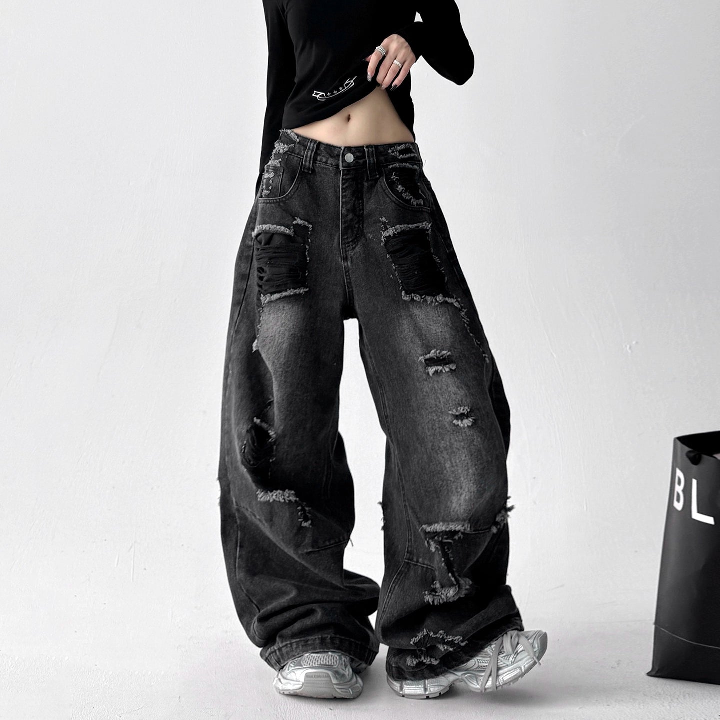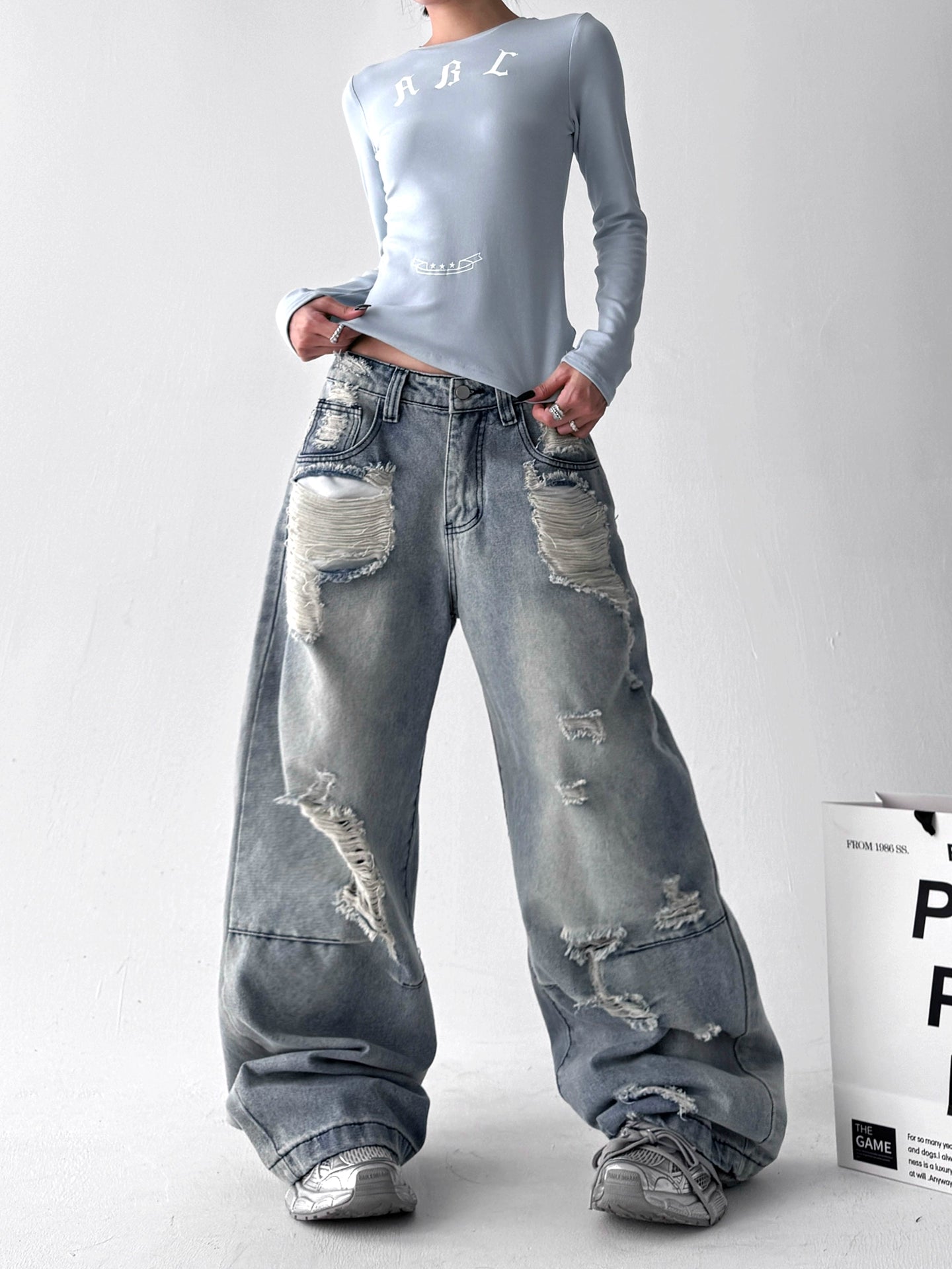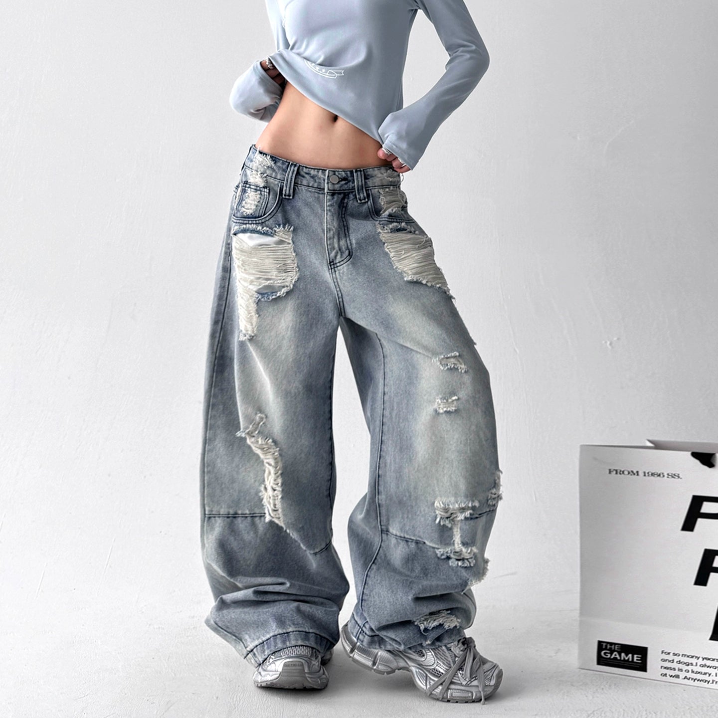【25s Aug.】Vintage Blue Distressed Washed Loose Wide-Leg Jeans
