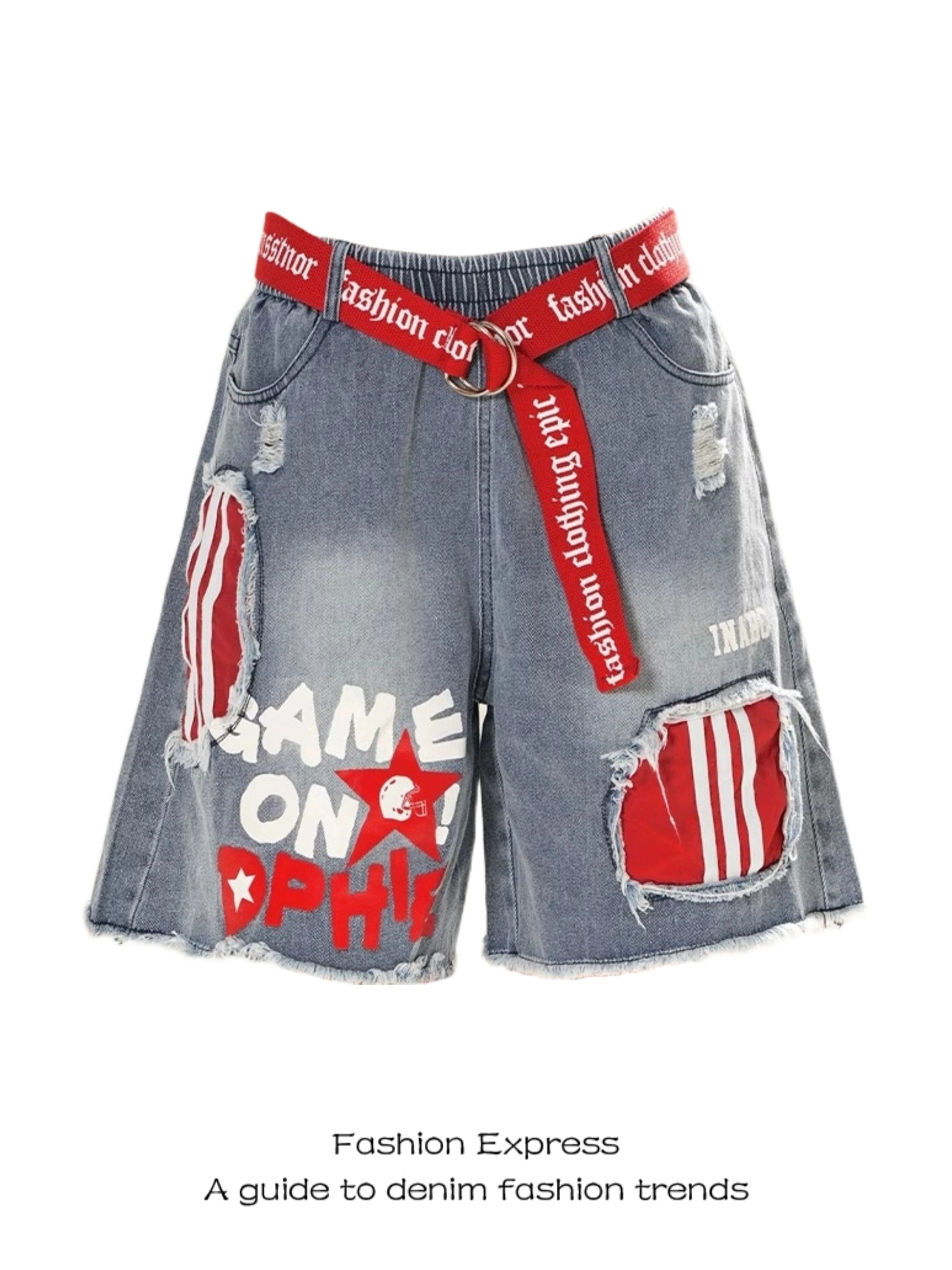 【25s Aug.】Vintage Striped Patchwork Distressed Denim Shorts