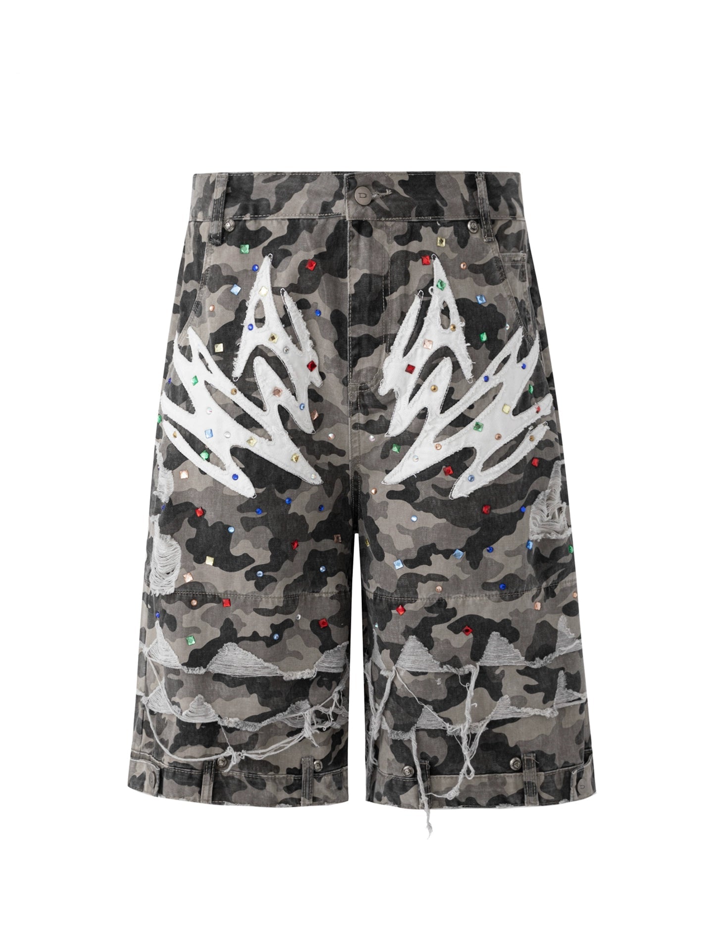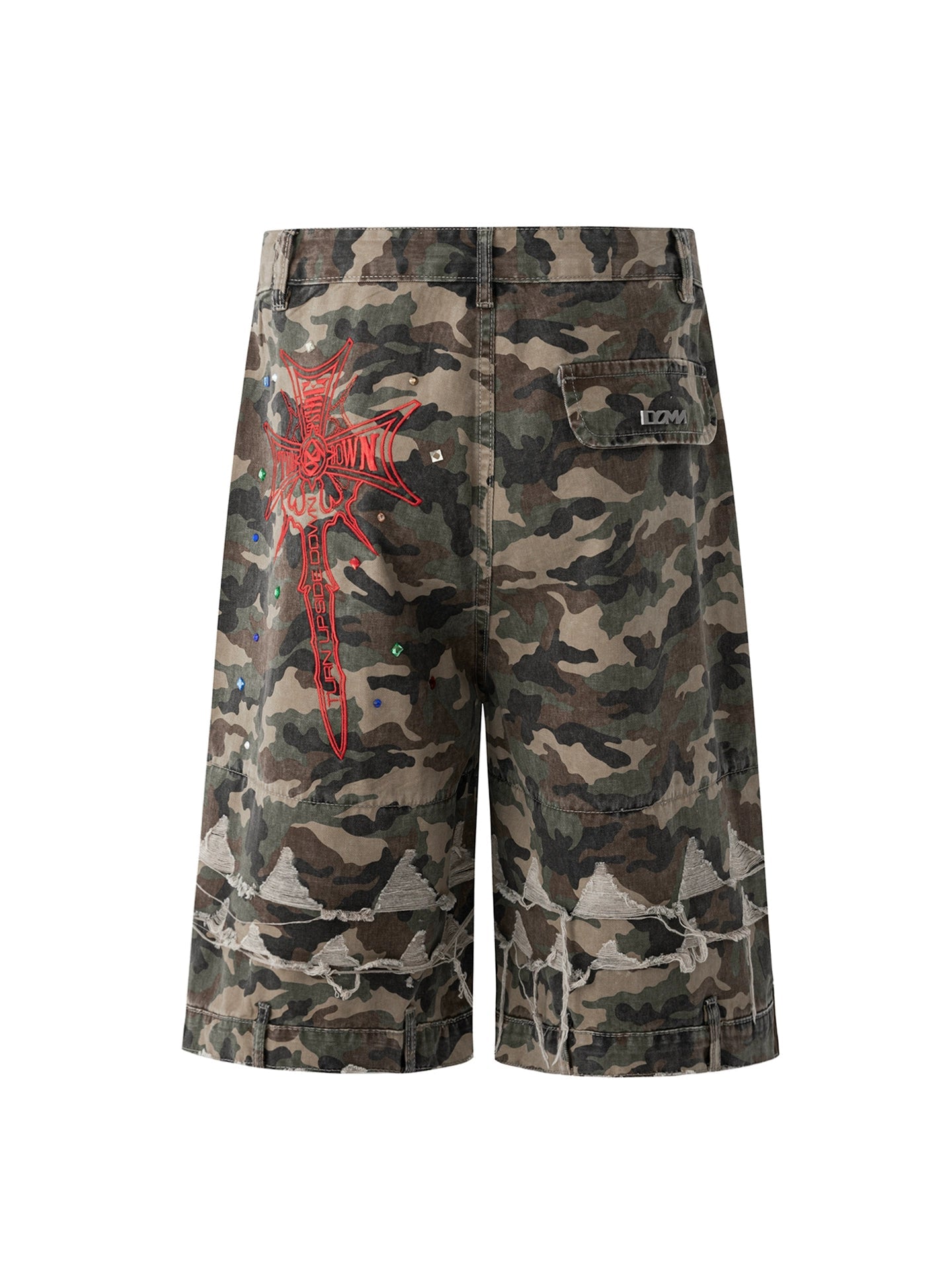 【25s Aug.】Vintage Washed Camo Print Shorts