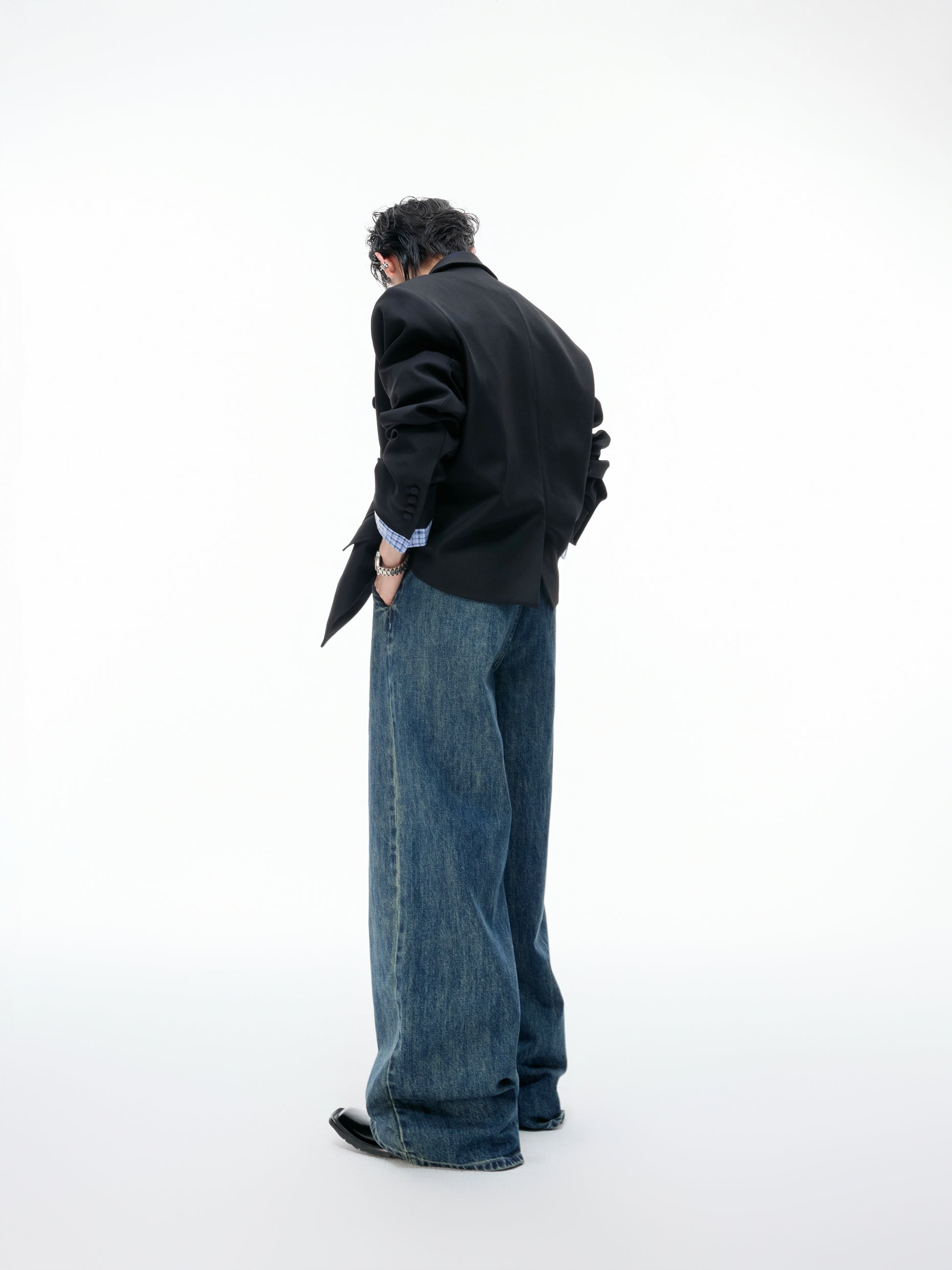 【25s Aug.】Washed Distressed Draped Ribbon Loose-Fit Jeans