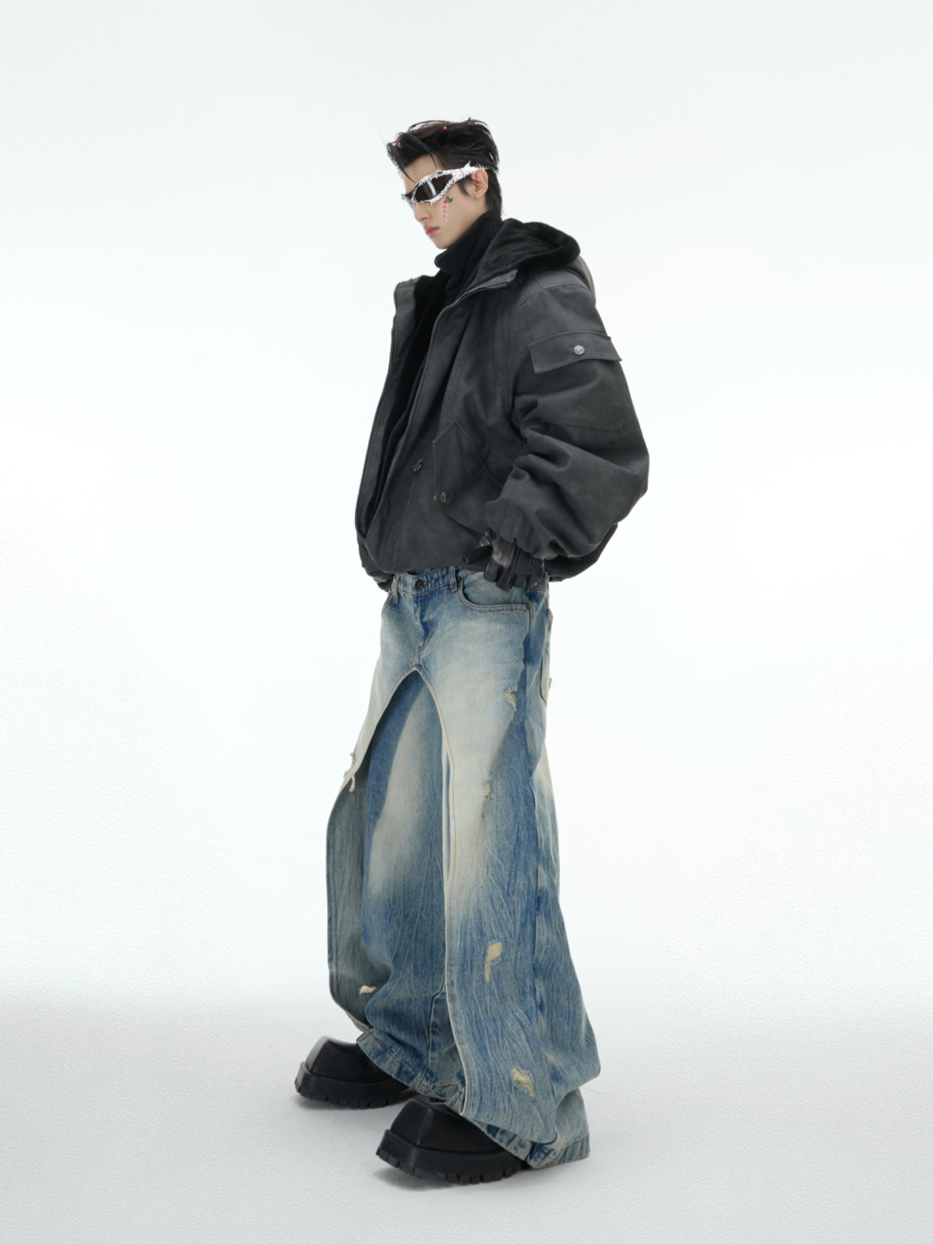 【25s Feb.】Deconstructed Distressed Reversible Hooded Cotton Jacket
