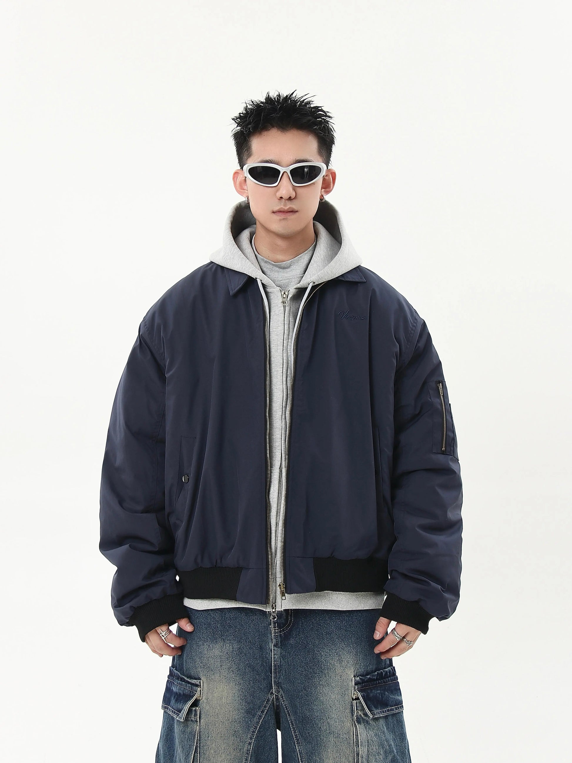 【25s Jul.】Bomber-Style Pilot Jacket with Turn-Down Collar