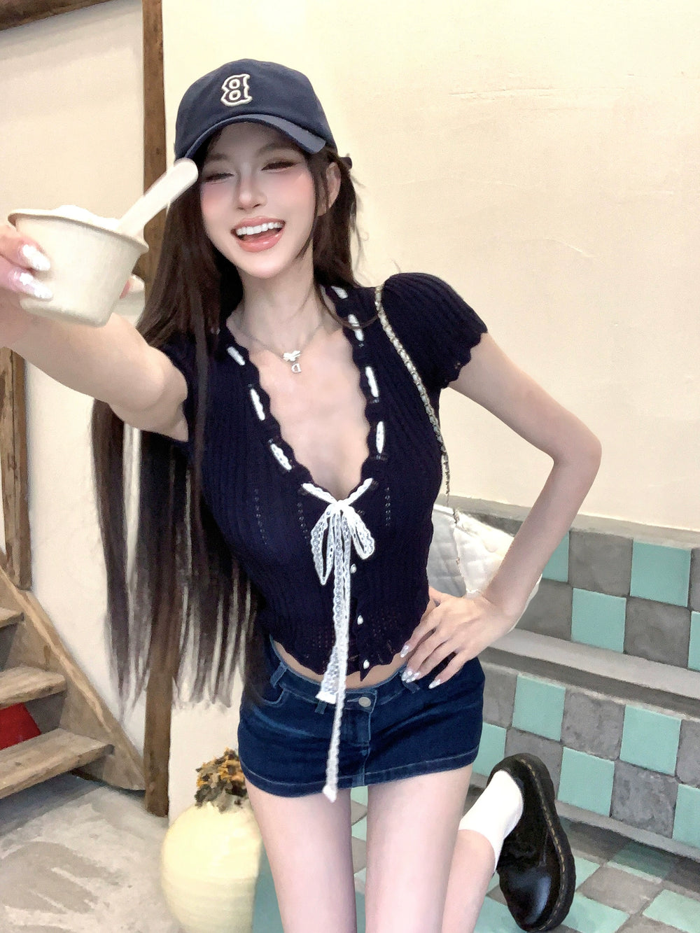 Model information: Height: 165CM Weight: 47 KG Try on size: S