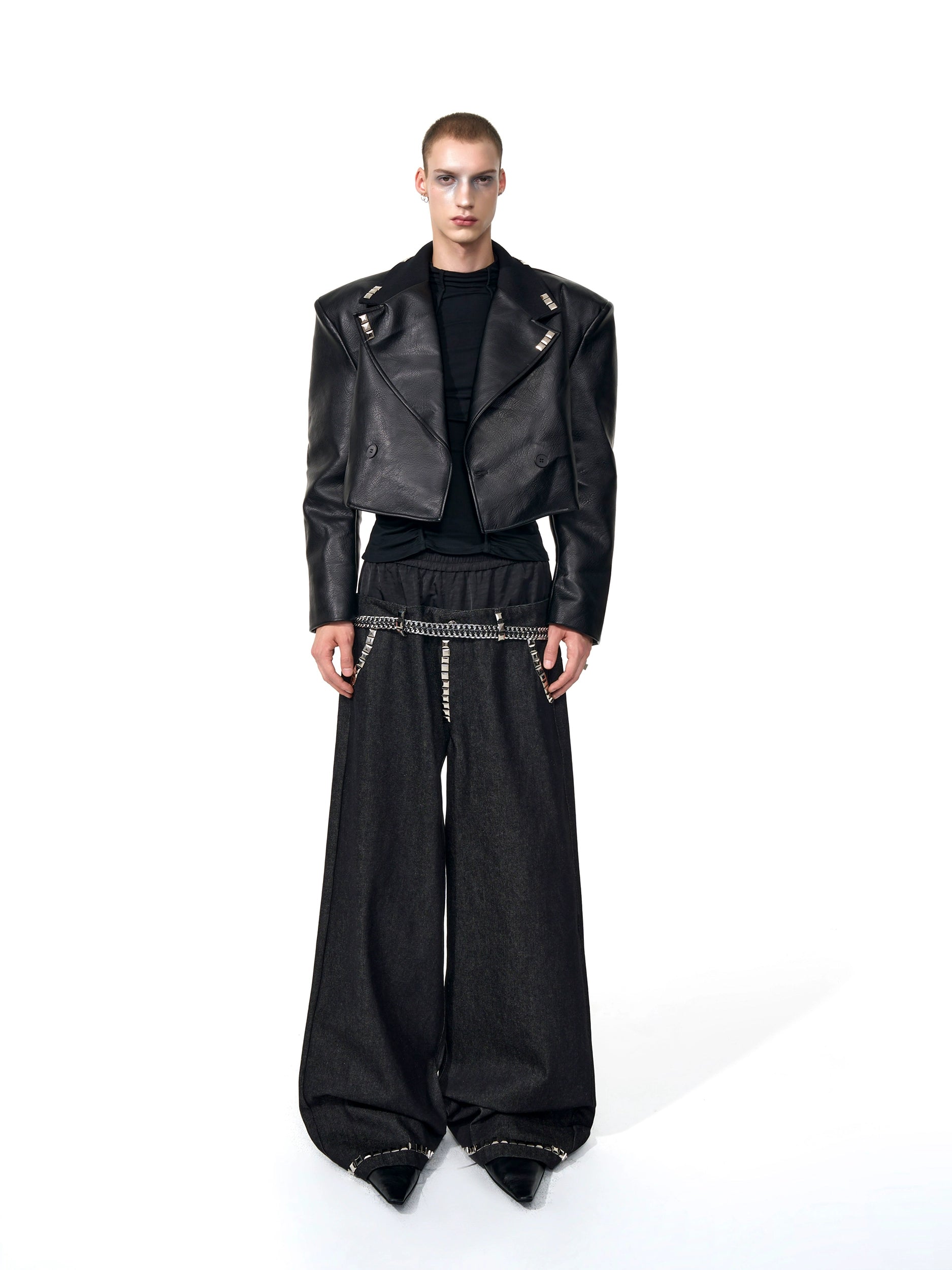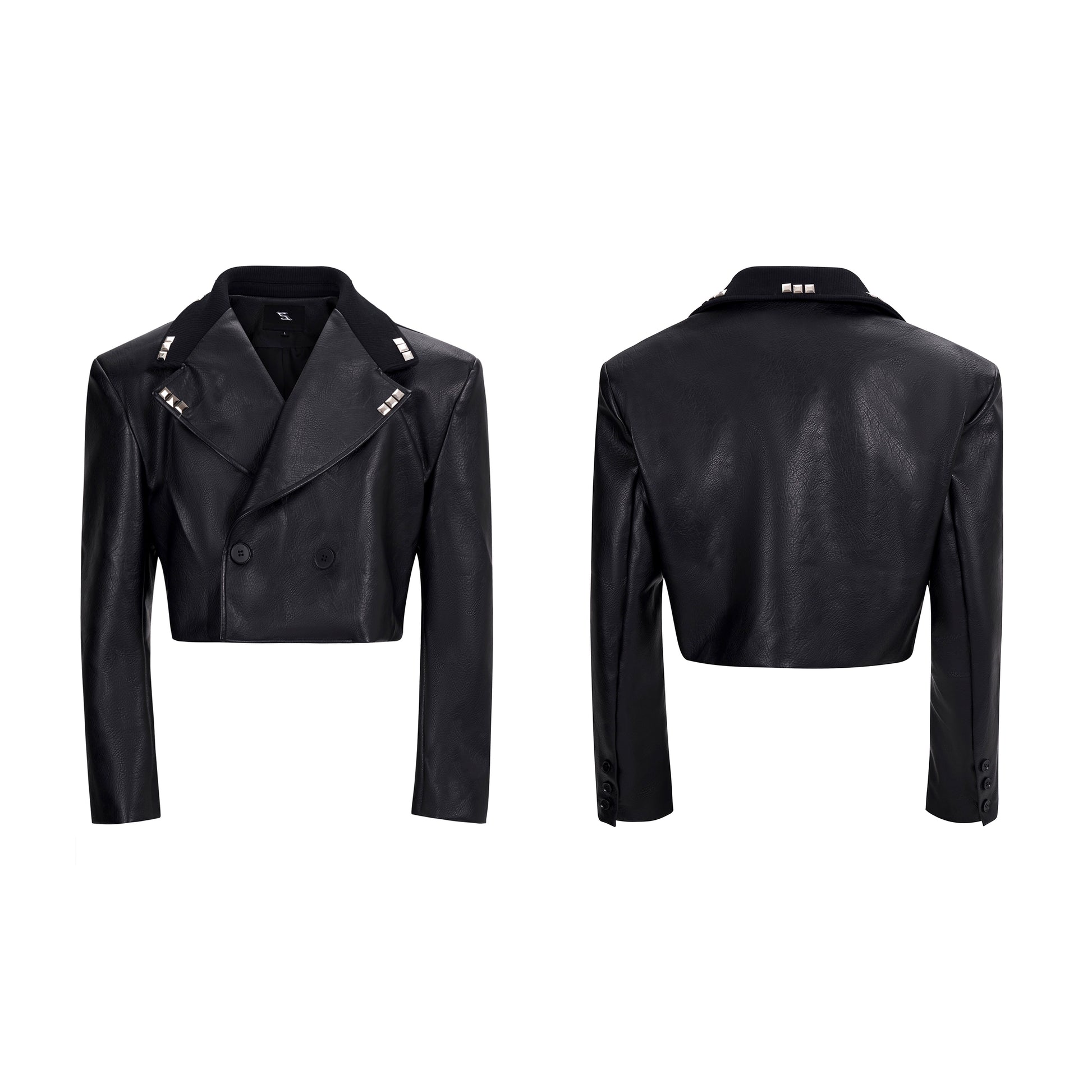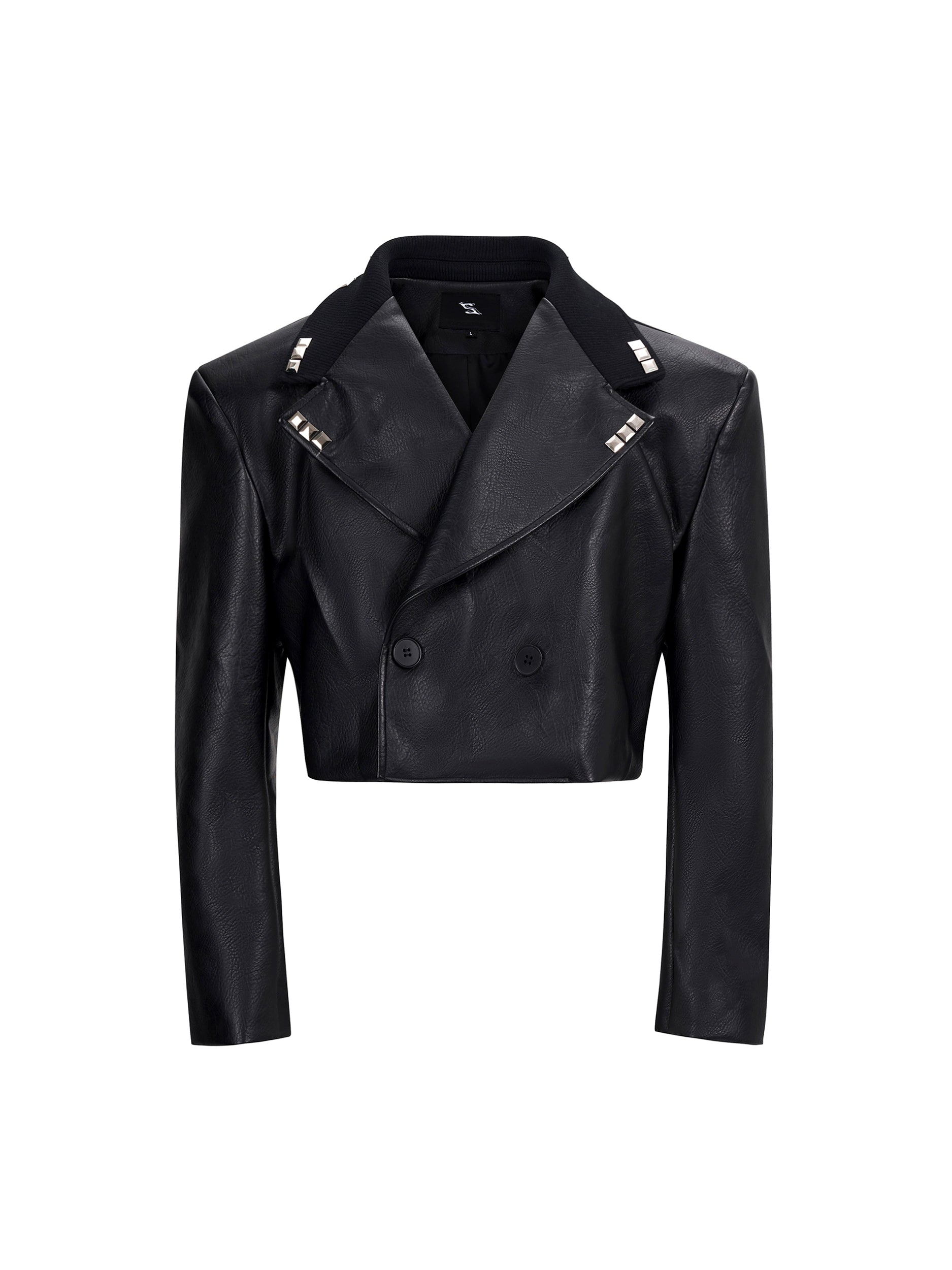 【25s Sep.】Studded Cropped PU Leather Jacket