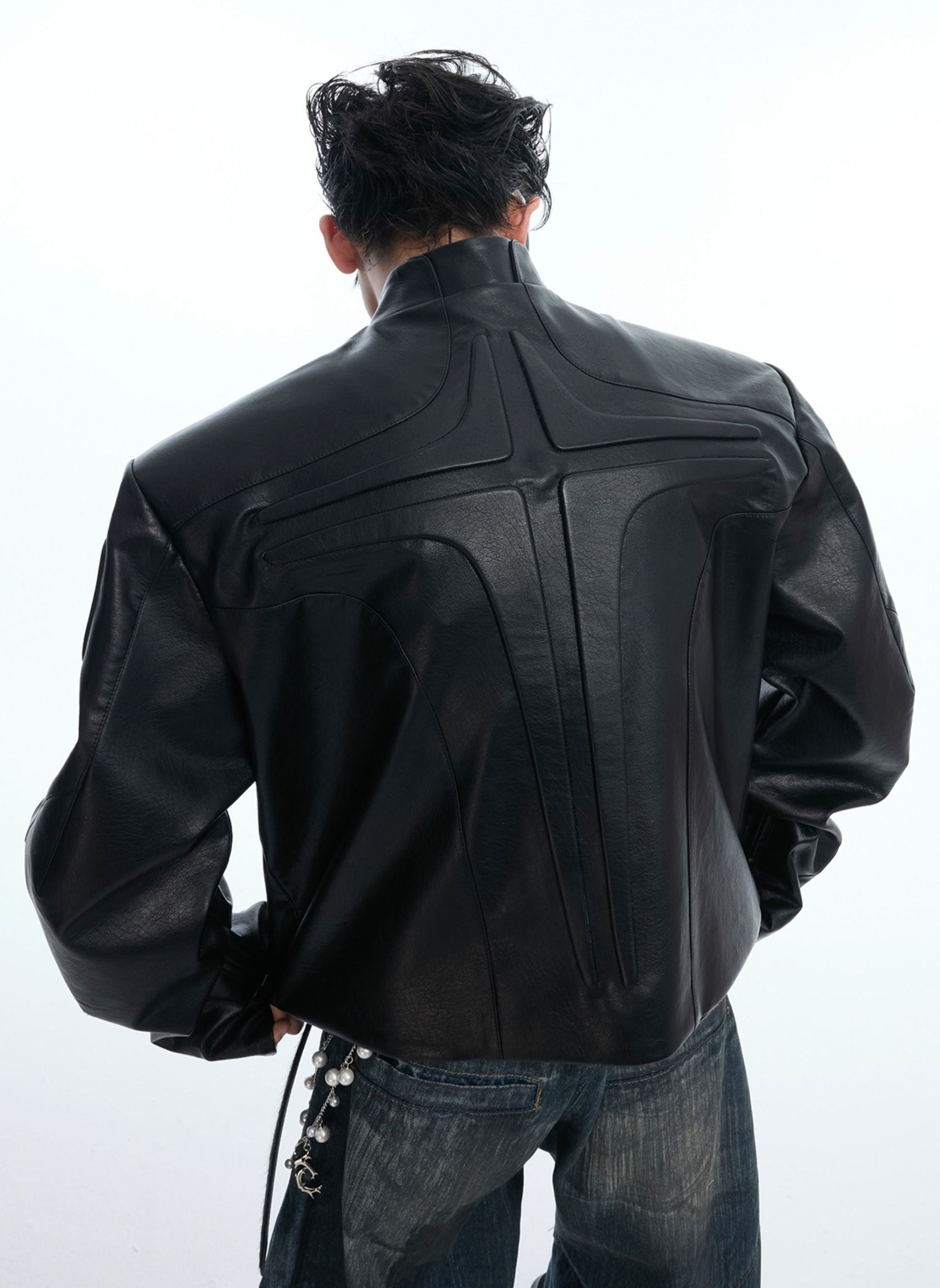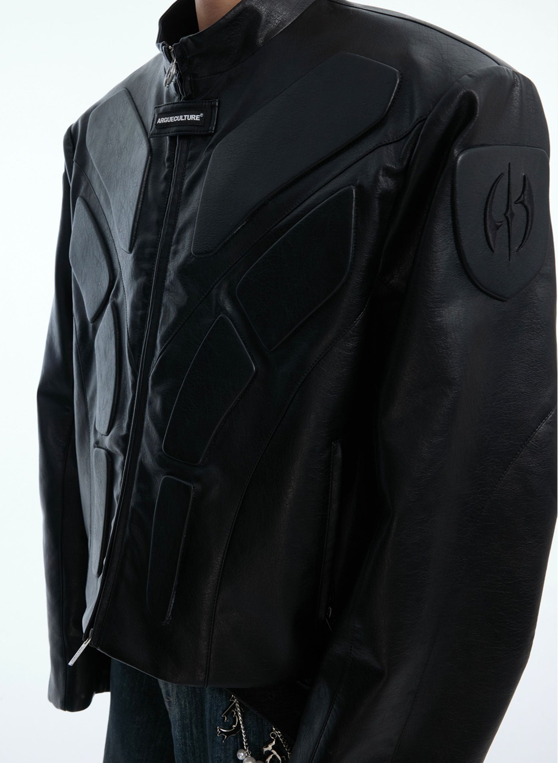 【25s Aug.】3D Relief Motorcycle Armor Leather Jacket