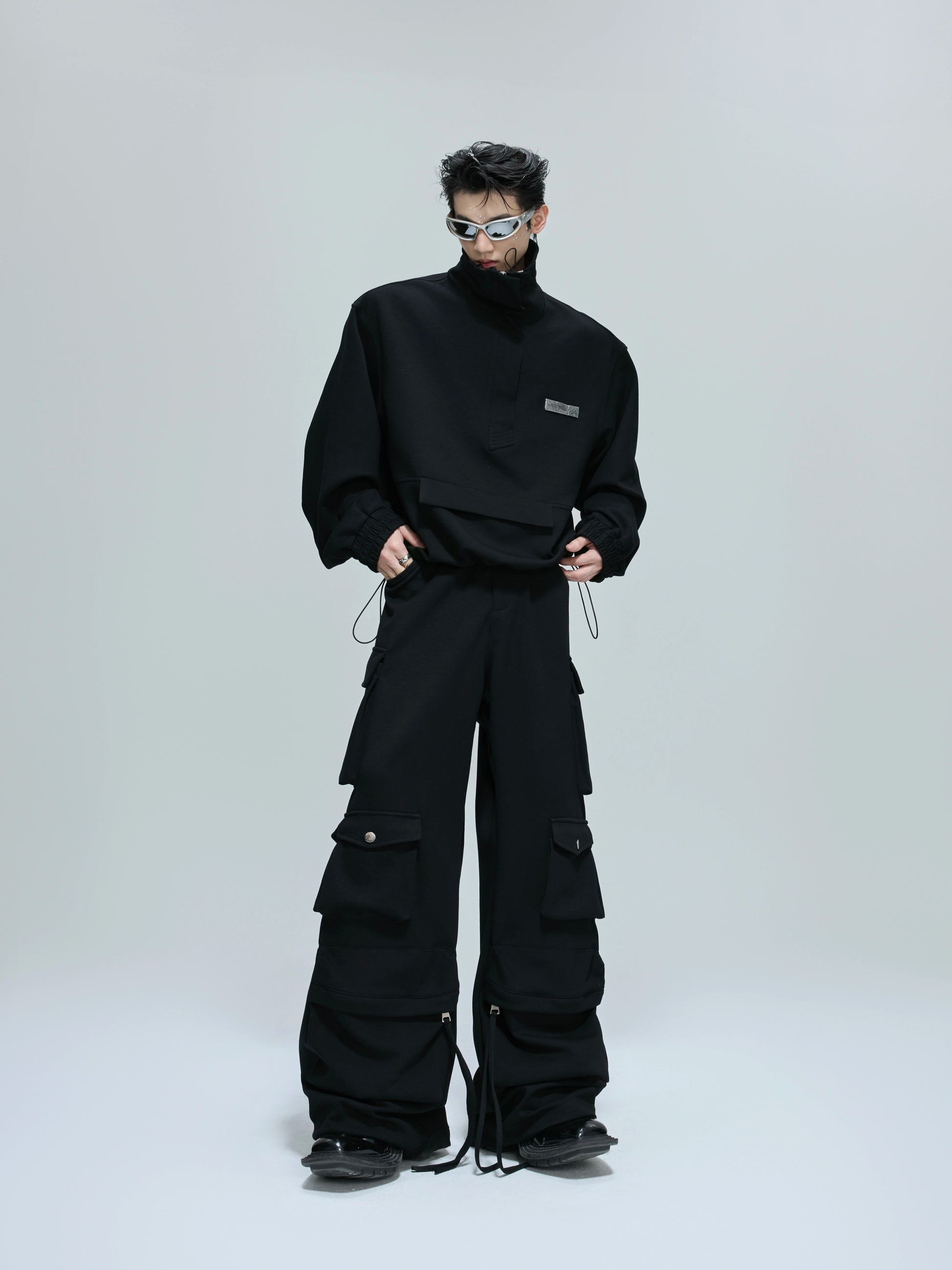 【25s Oct.】Casual Stand Collar Cropped Sweatshirt/Ribbon Pocket Pants