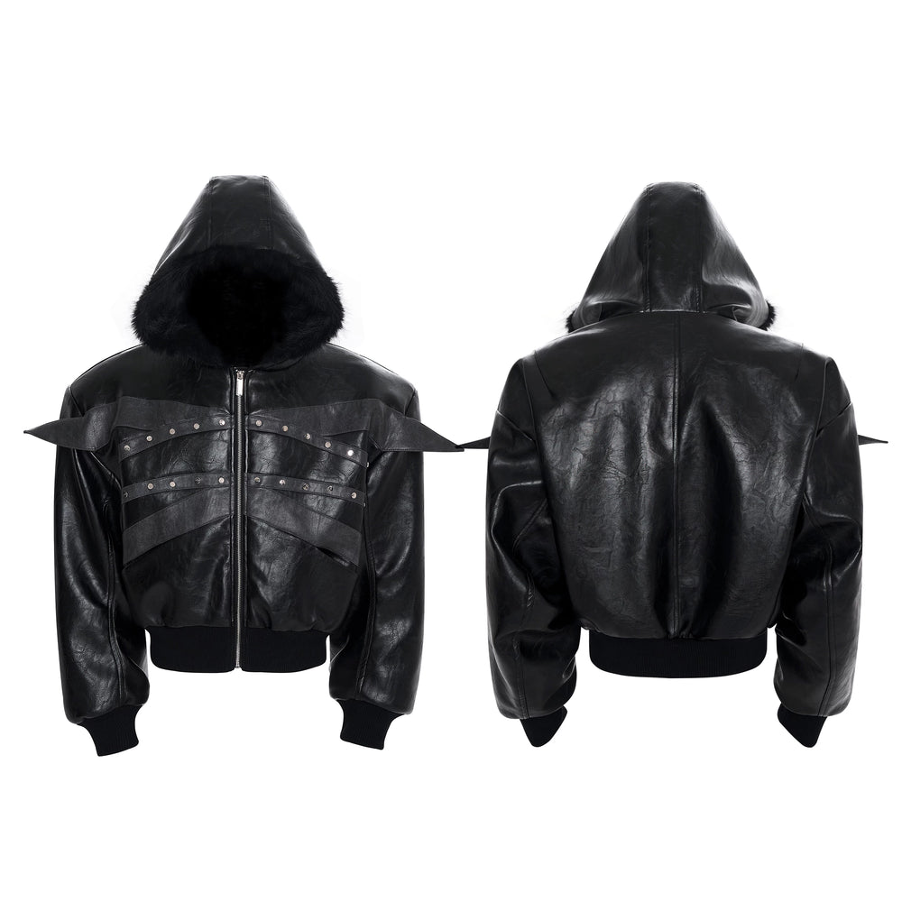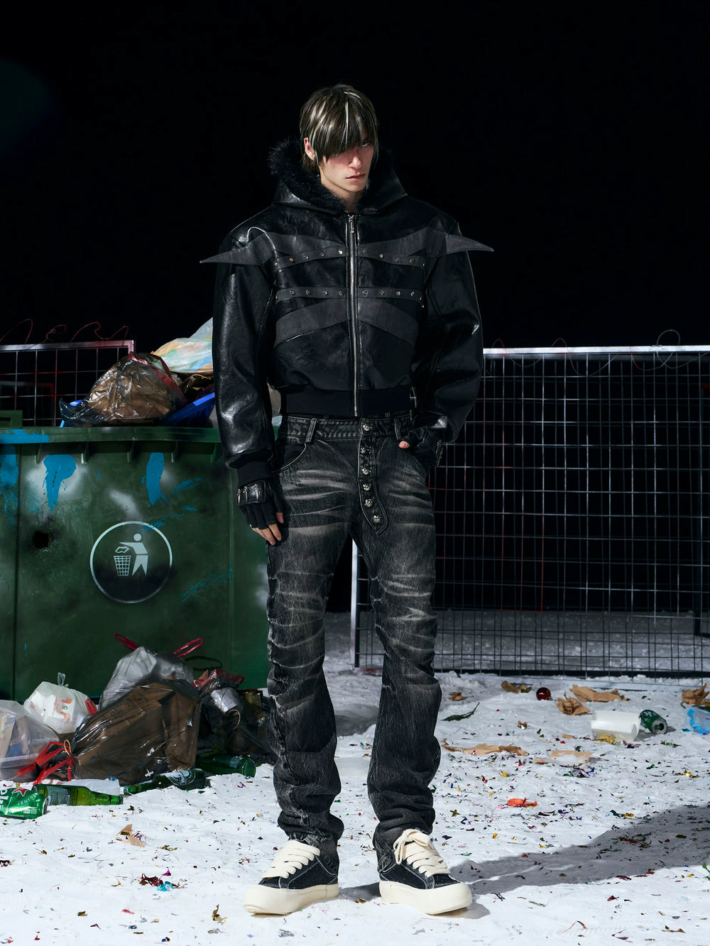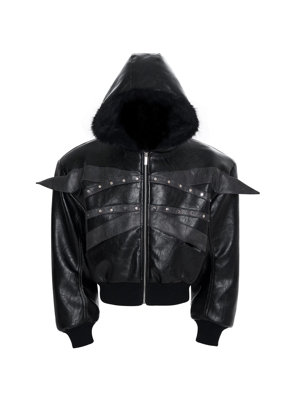 Deconstructed Silhouette Cropped Fur Collar Jacket