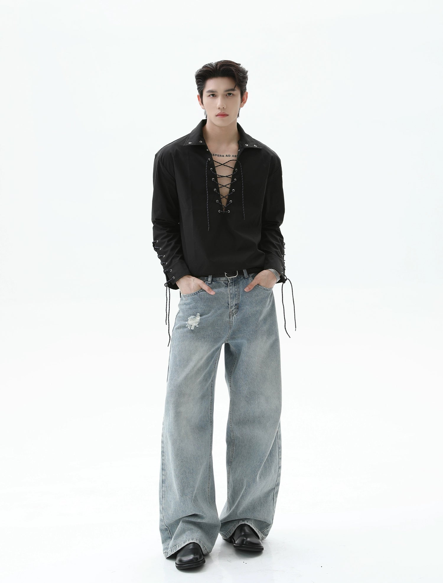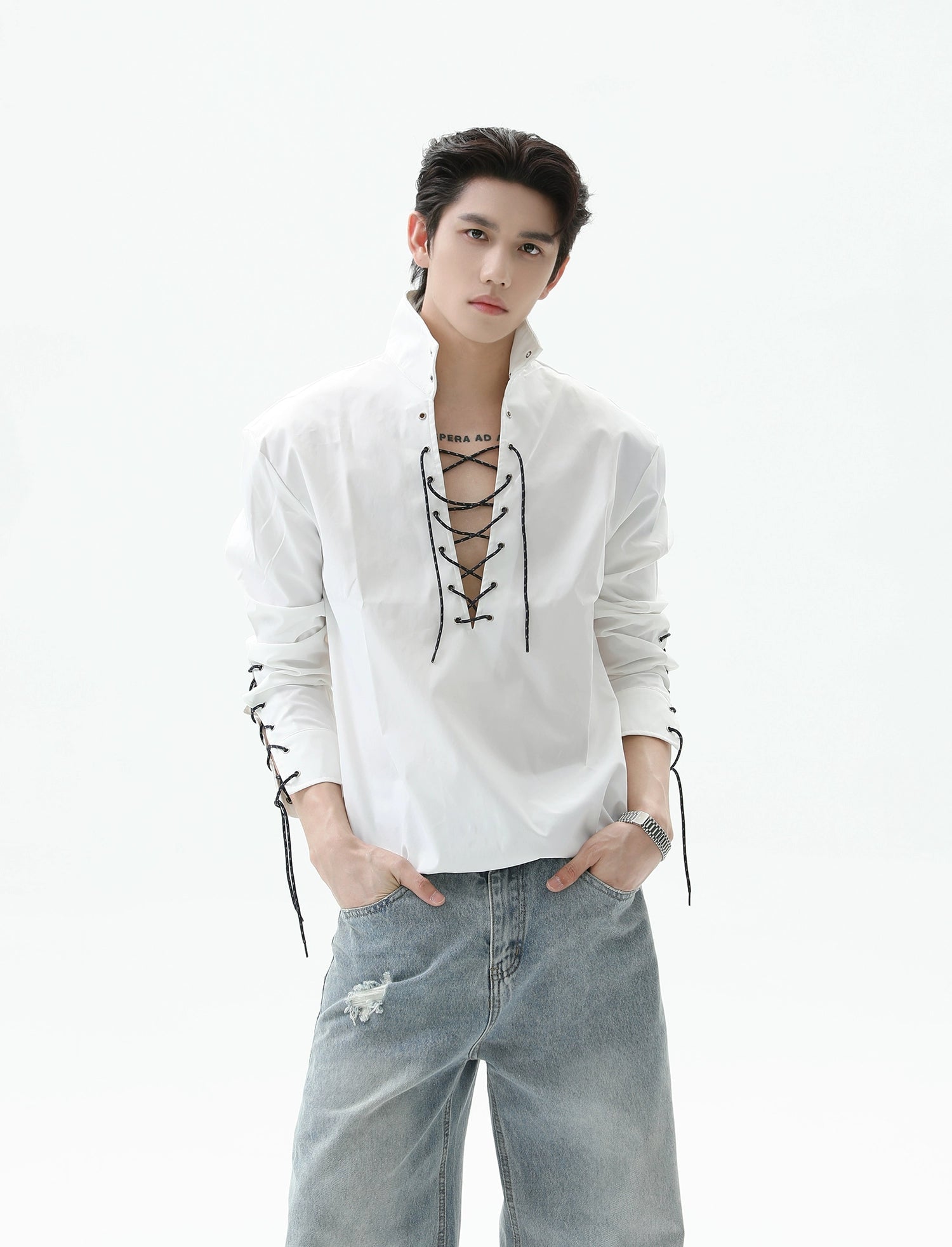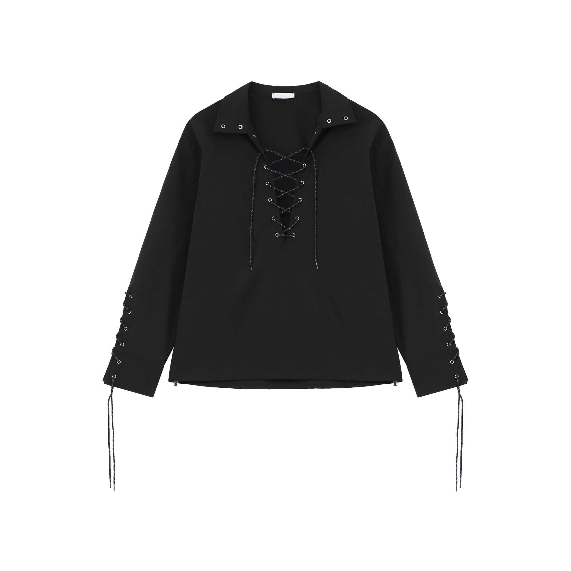 【25s Sep.】Deep V-neck Solid Color Tie-string Shirt