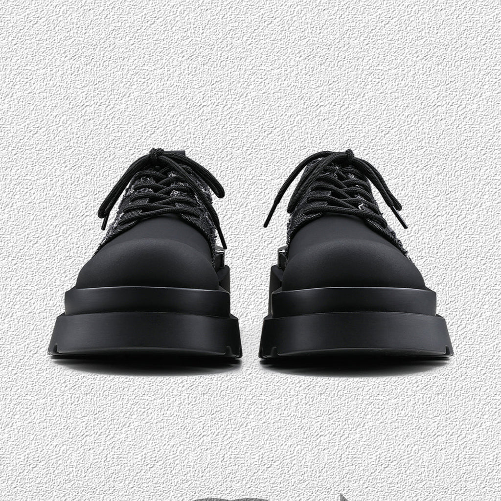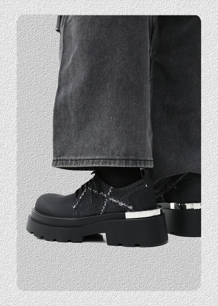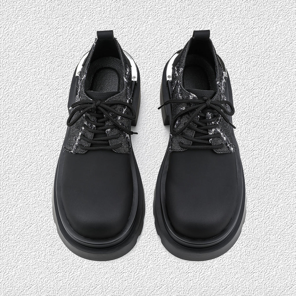 Denim Patchwork Iron Plate Thick-soled Derby Shoes