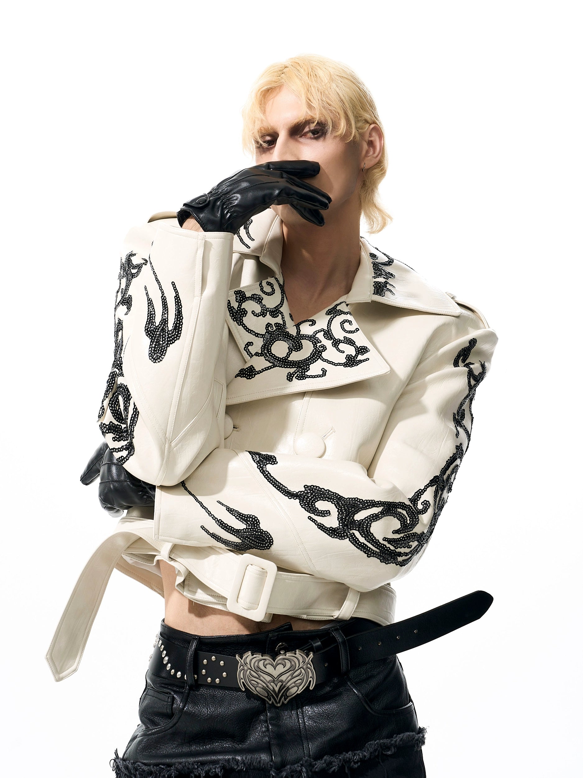 【25s Nov.】Dragon Pattern Stylish Sequined Leather Jacket
