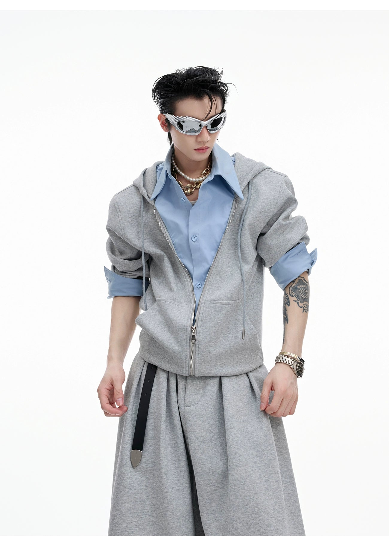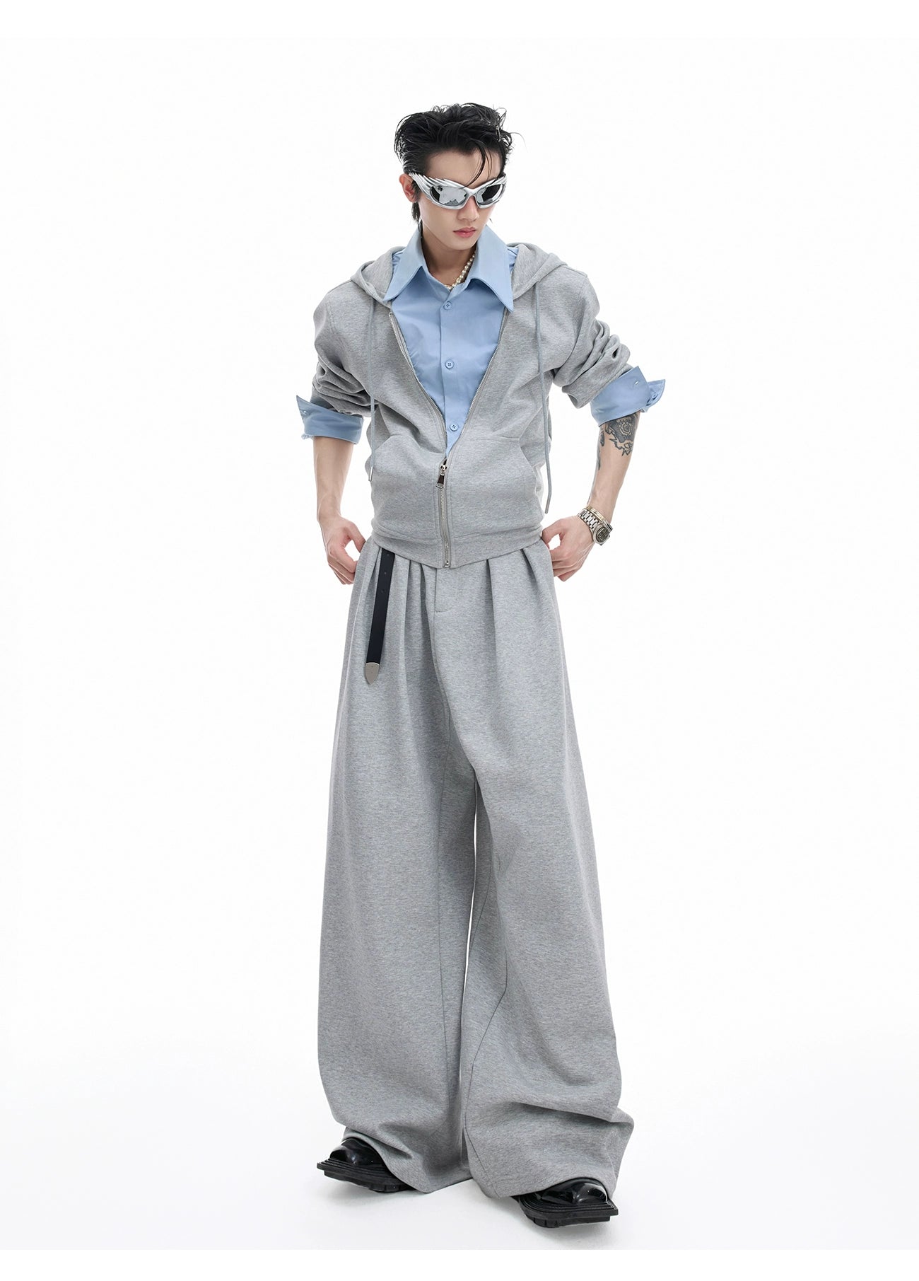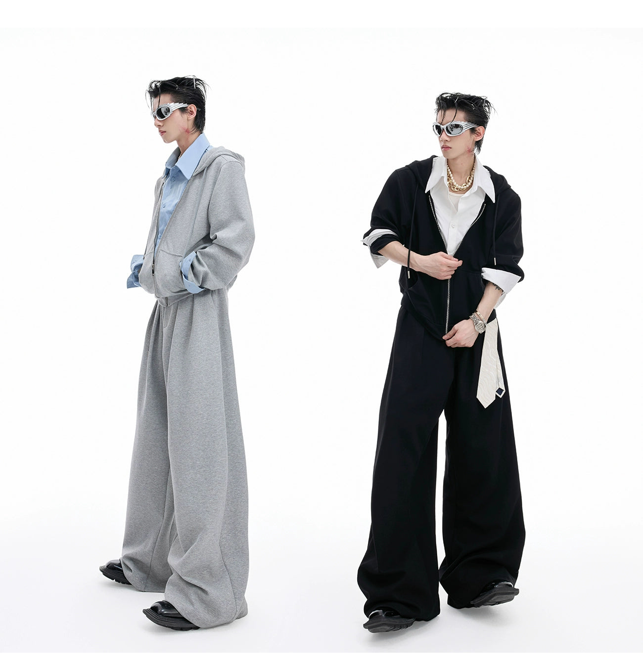 【25s Aug.】Mock Two-piece Shirt Stitching Hooded Sweatshirt/Pants