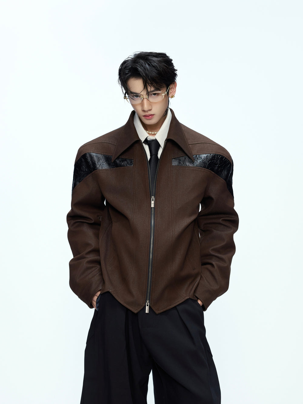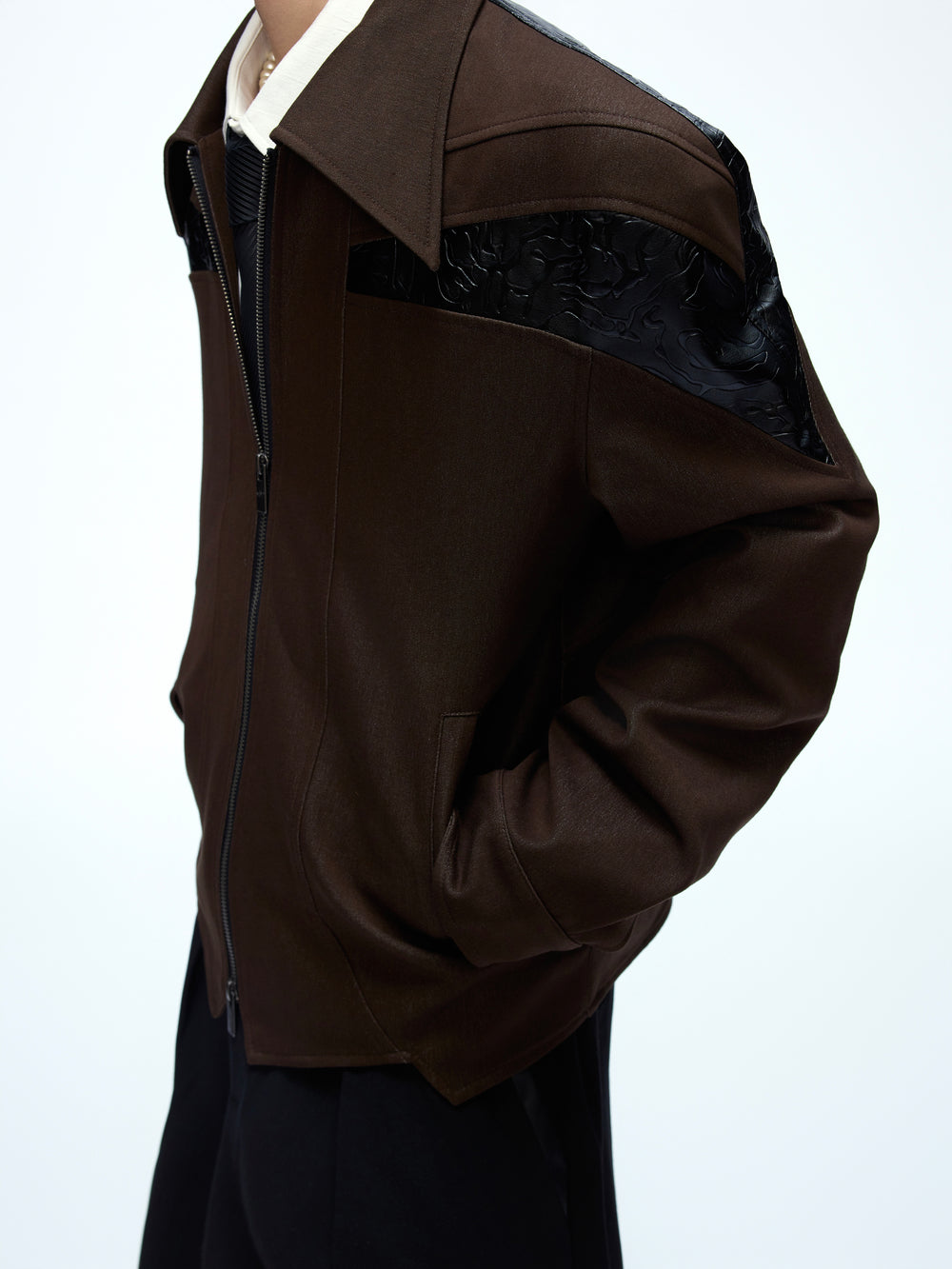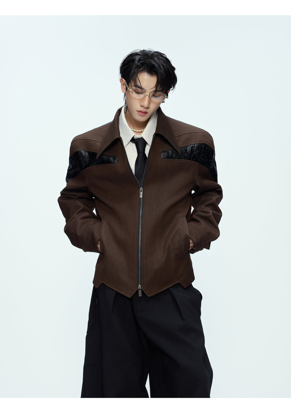 【25s Oct.】Glossy Paneled Deconstructed Leather Jacket