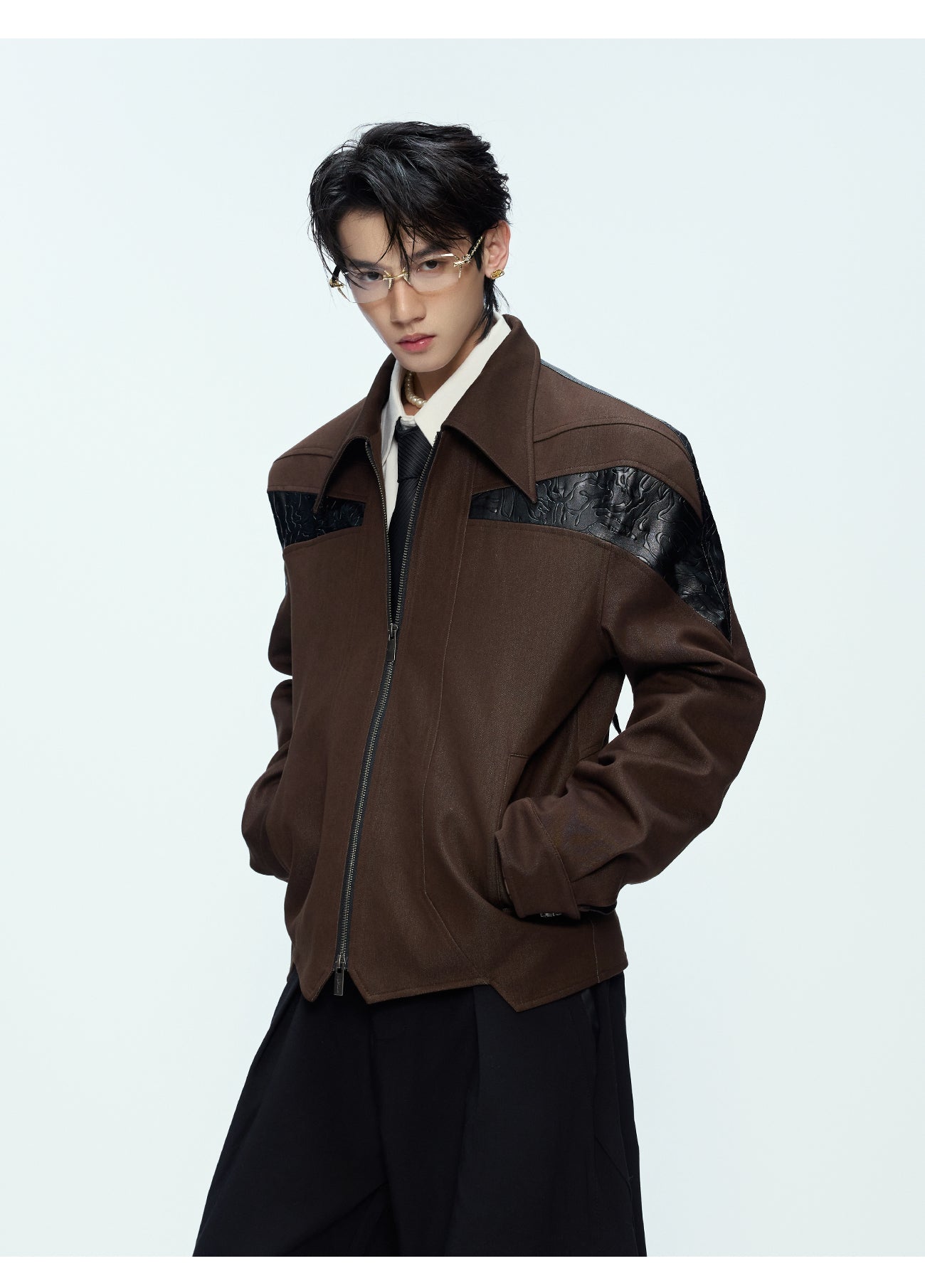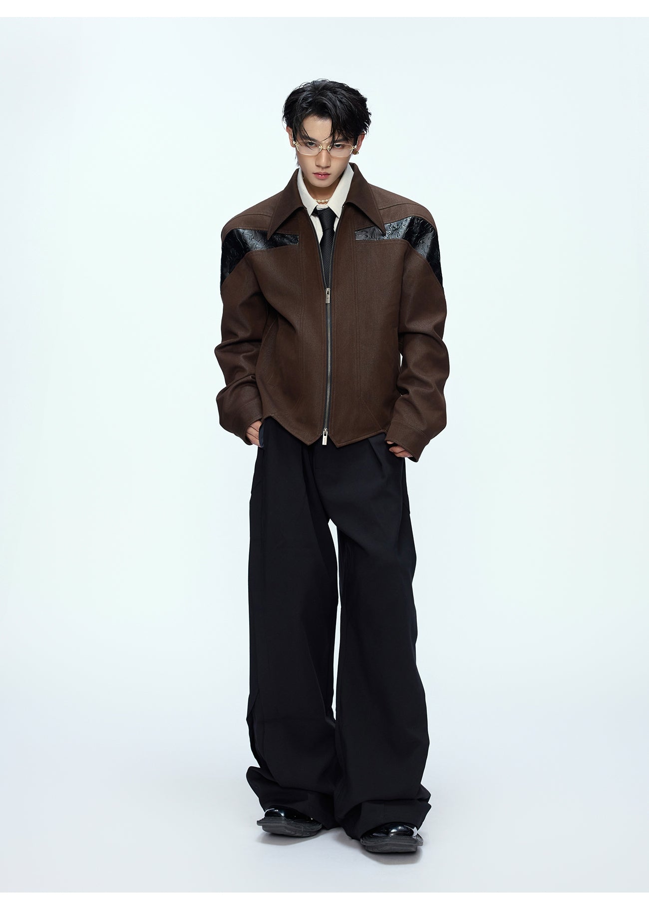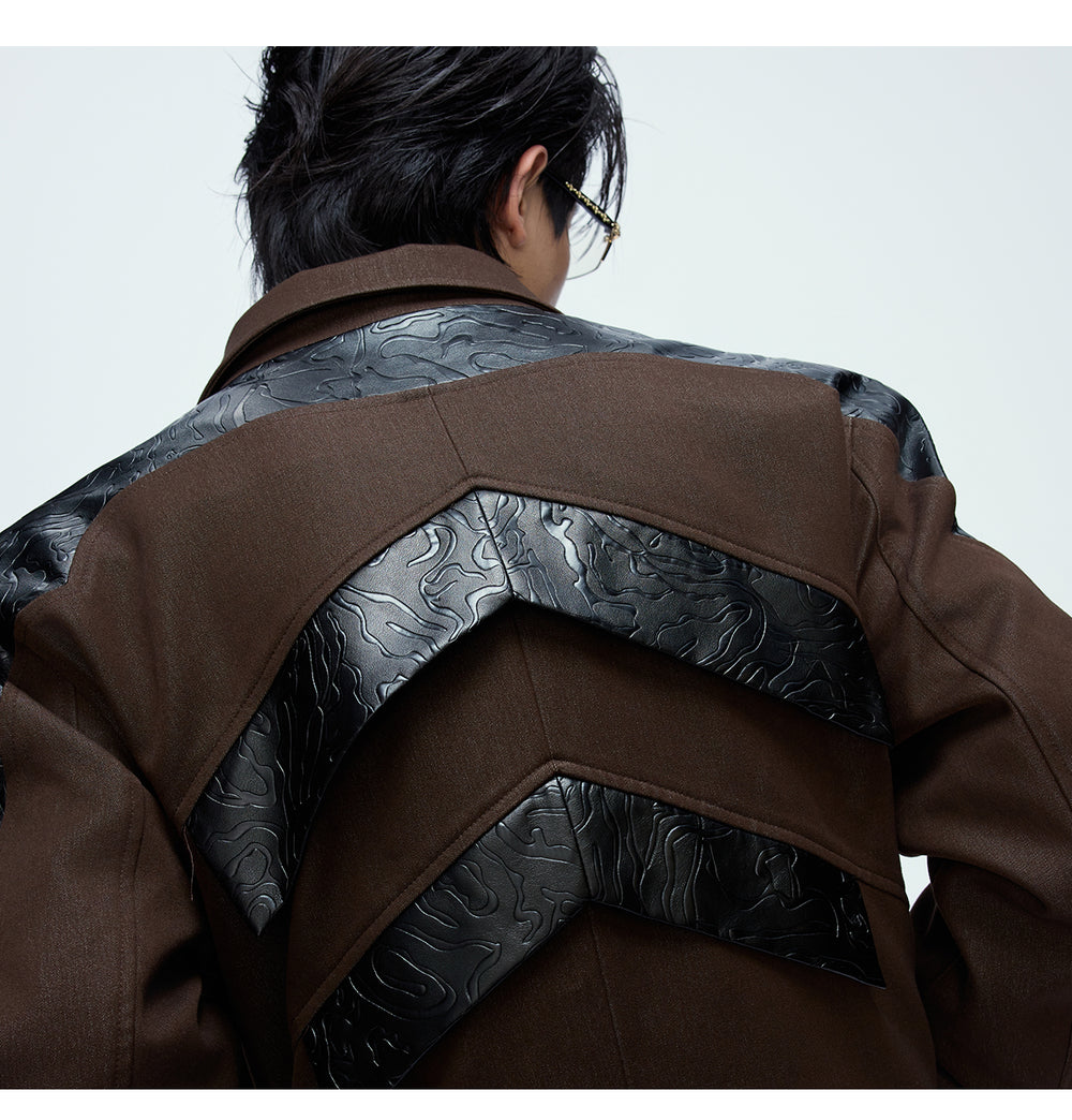【25s Oct.】Glossy Paneled Deconstructed Leather Jacket