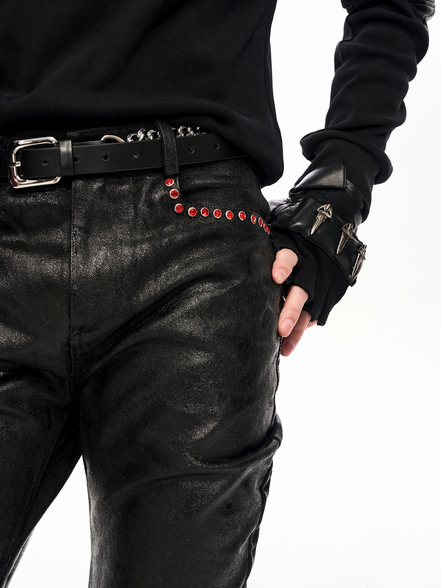 【25s Nov.】Glossy Waxed Curved Pile Jeans