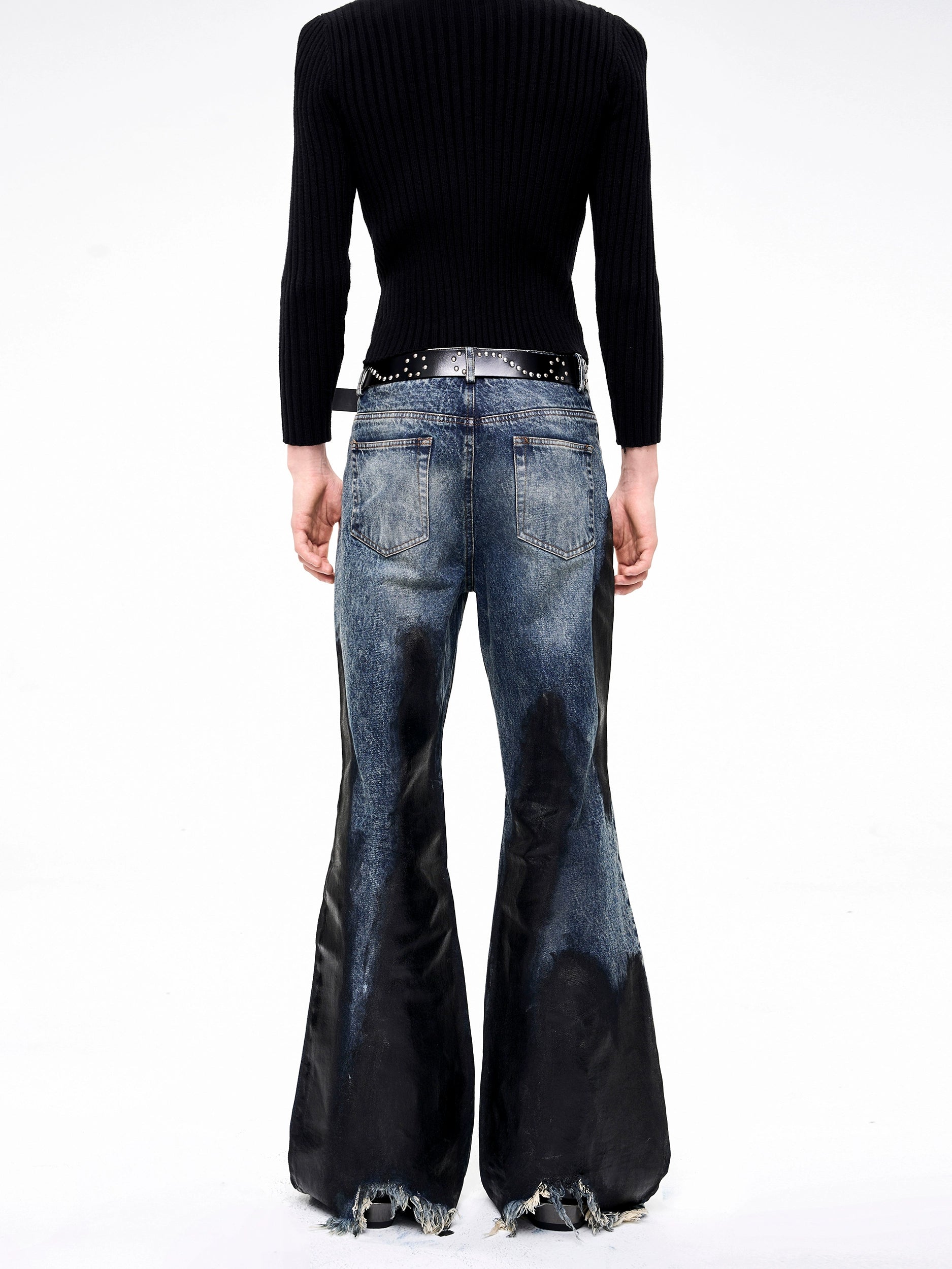Heavy Waxed Flared Tassel Jeans