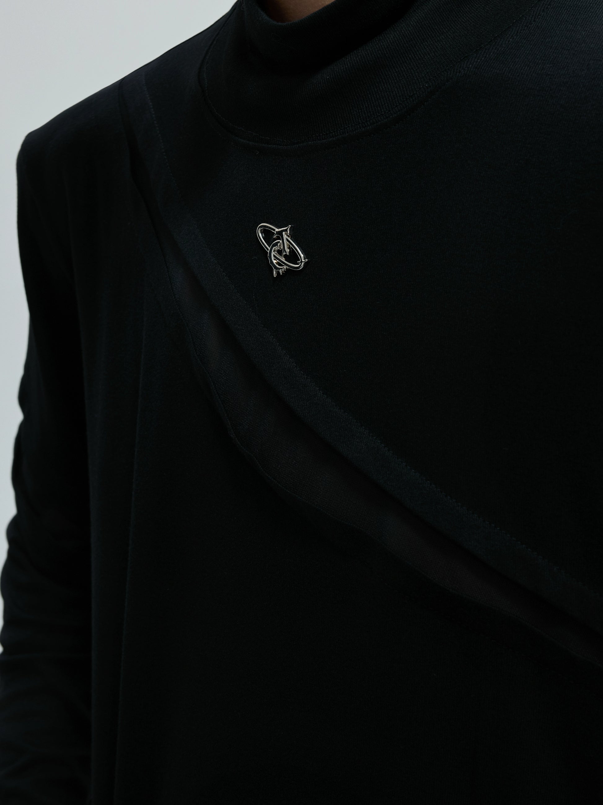 【25s Nov.】High-neck Deconstructed Base Layer High-elastic Metallic T-shirt