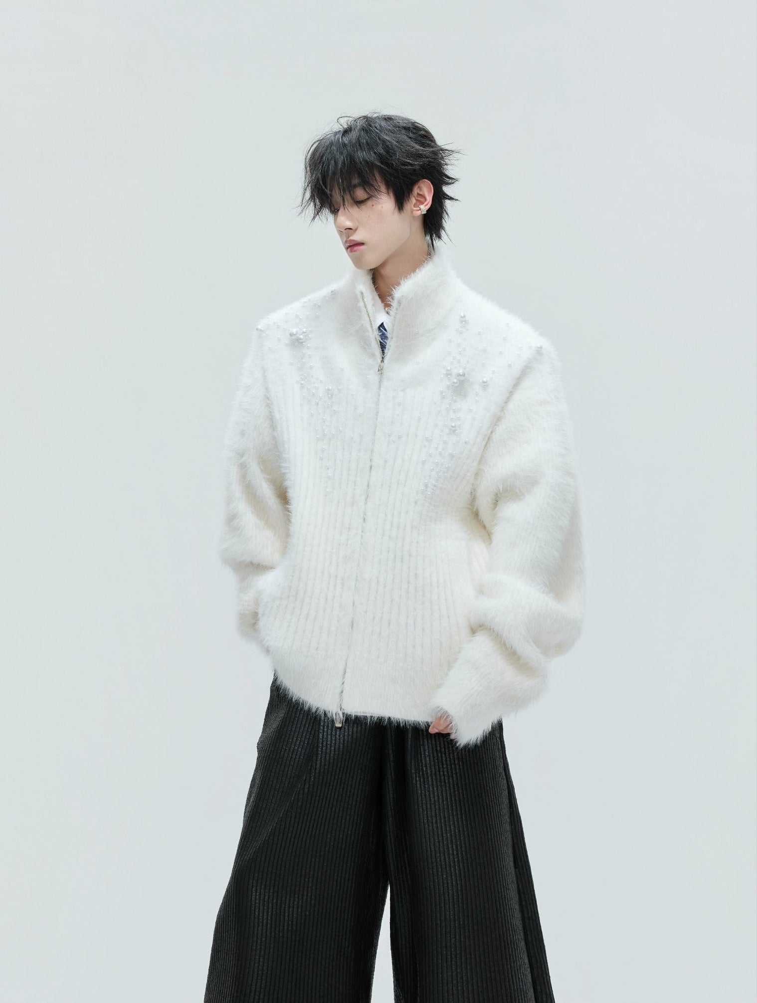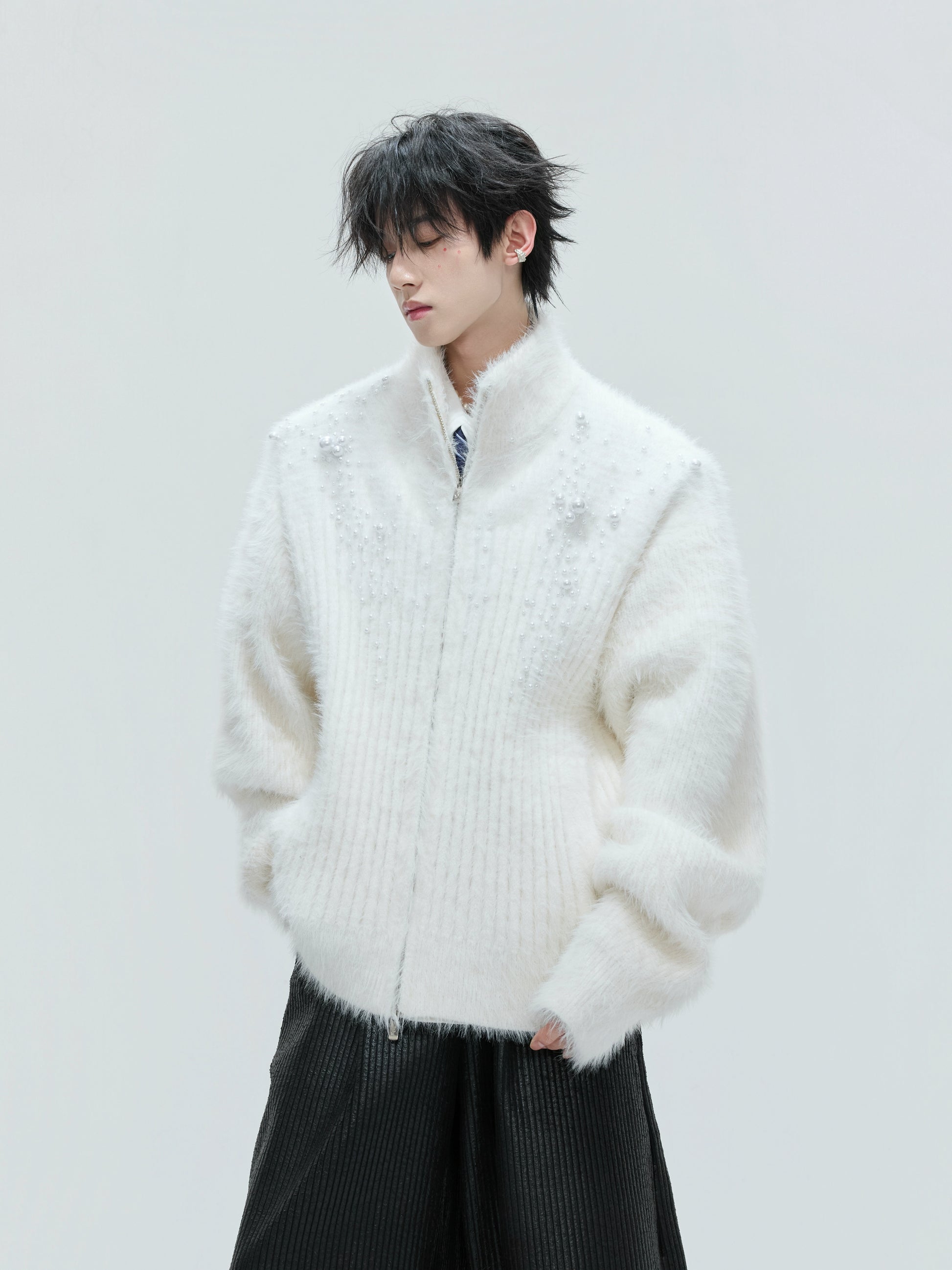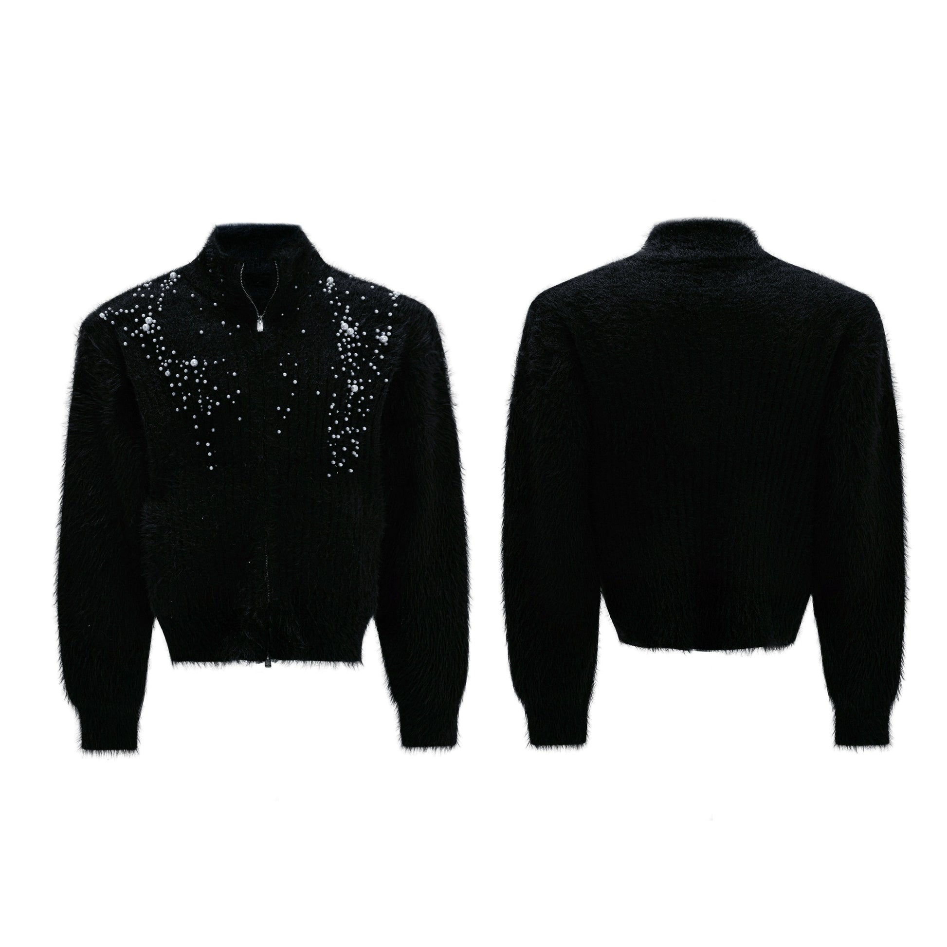 【25s Nov.】High-neck Plush Pearl Embellished Sweater
